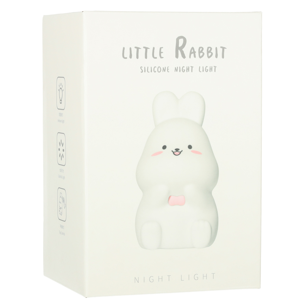 Lampka nocna dla dzieci silikonowa dotykowa miękka LED RGB biała z różem króliczek