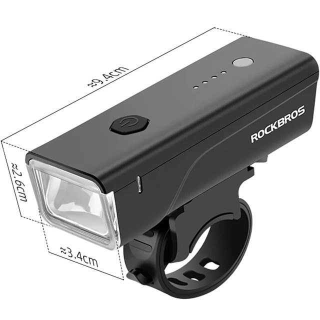 Lampka rowerowa przednia Rockbros 24510003001 260 lm + kabel USB-C – USB-A – czarna