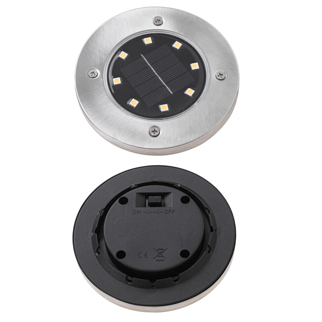 Zestaw czterech solarnych lampek najazdowych, które pięknie oświetlą każdy ogród. Na jednej lampce znajduje się, aż 8 diod LED – co zapewnia dużą ilość światła. Tworzywo: stal nierdzewna + plastik. Wodoodporność: IP44. Wym.: 12 cm x 2,5 cm.