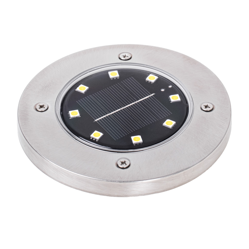 Lampy ogrodowe solarne najazdowe gruntowe czujnik zmierzchu wbijane świecący dysk 8LED 4szt. zimny biały