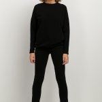 Przylegające spodnie damskie w stylu legginsów z dresowej dzianiny są wygodne i niezawodne podczas uprawiania sportu w jesienne dni, czy pośpiesznego życia w wielkim mieście. Spodnie posiadają szeroki pas na biodrach i małe zaszewki z tyłu, które podkreślają figurę. Legginsy są szyte z dzianiny z certyfikatem OEKO-TEX Standard 100.
