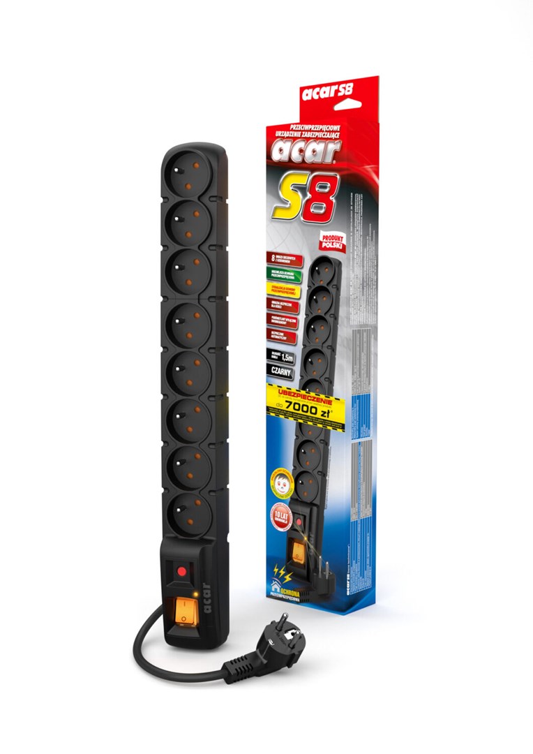 Listwa zasilająca Acar S8 (3m ; czarny)