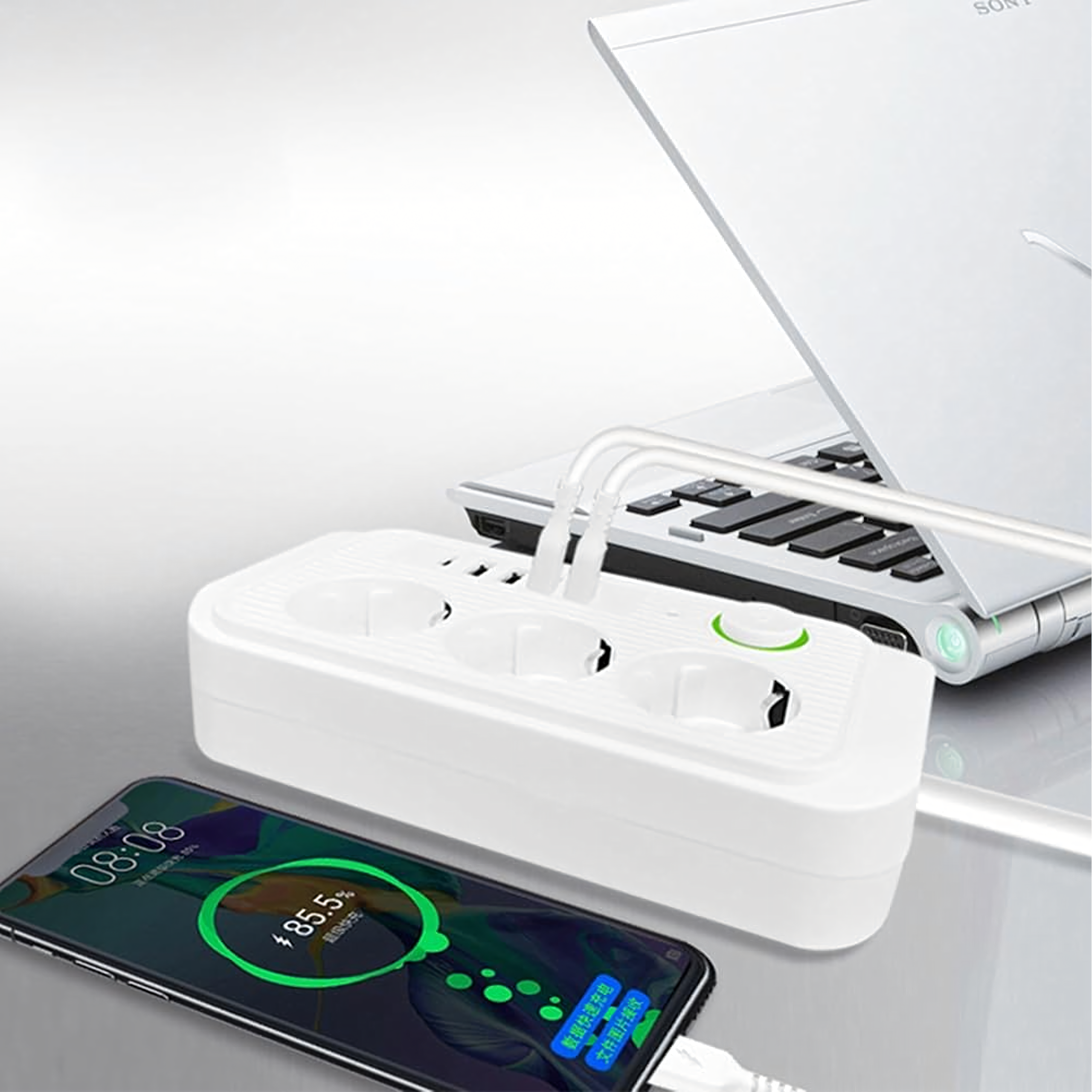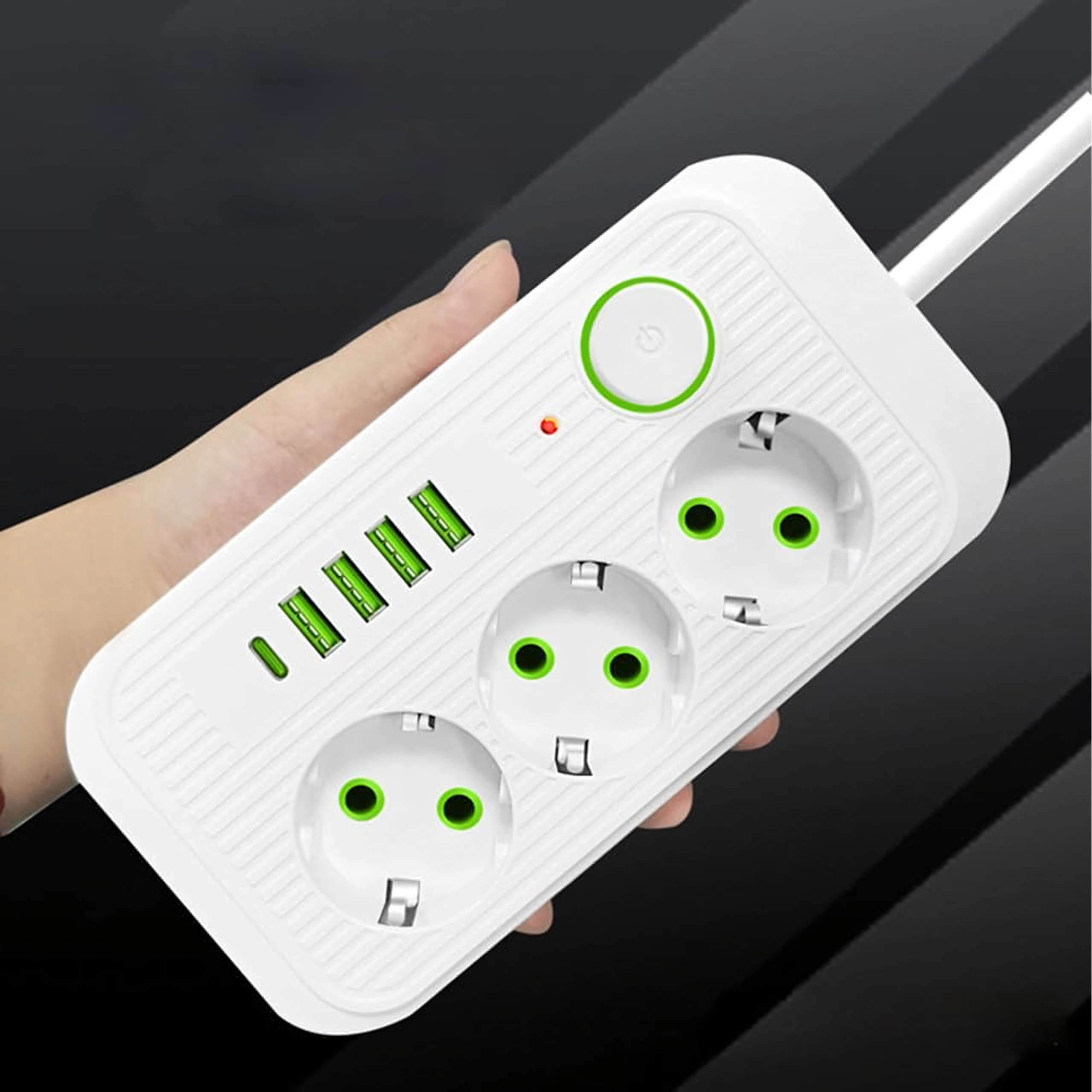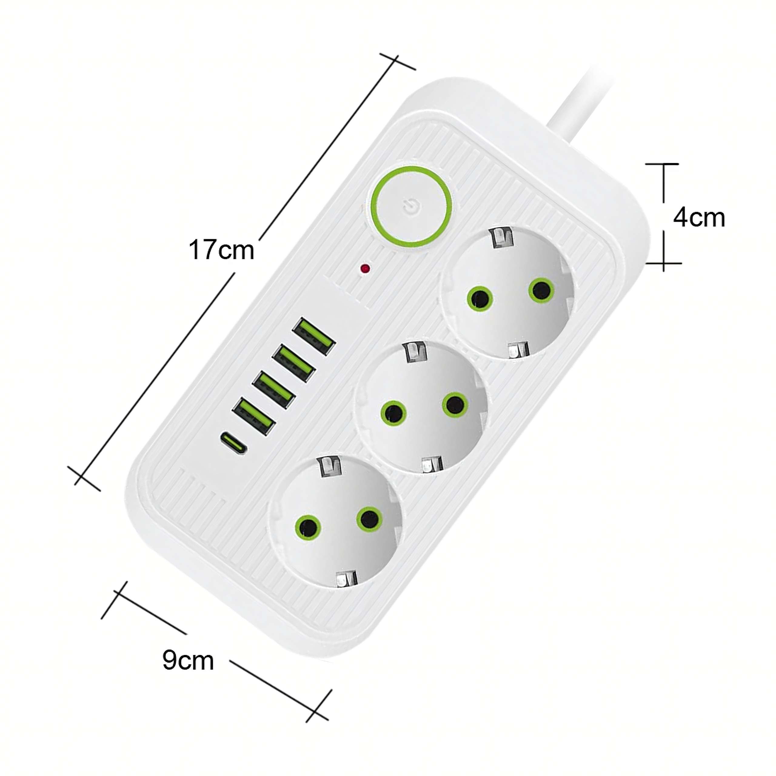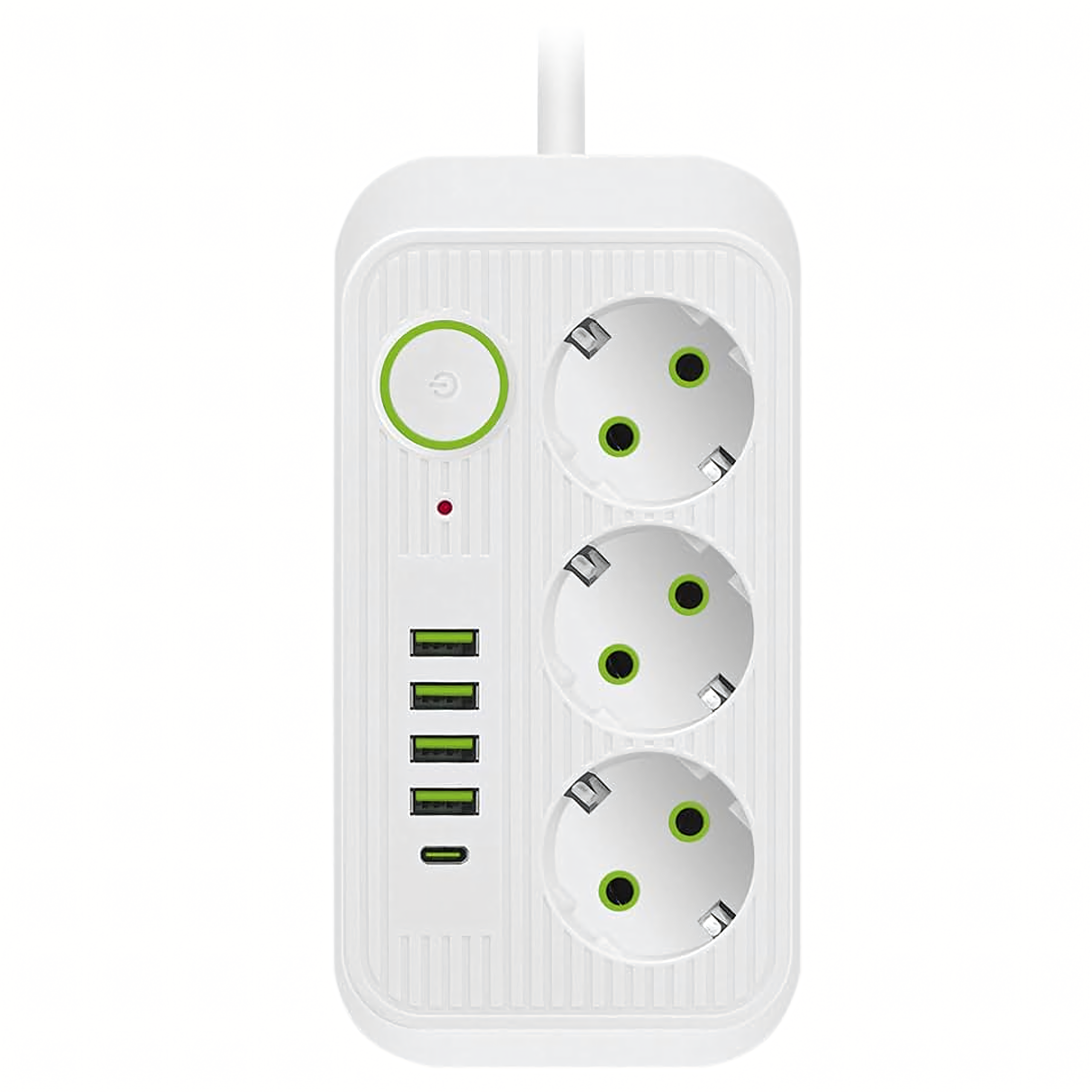 Przedłużacz/listwa zasilająca 2m z 3 gniazdami 230V, 4 portami USB-A i 1 USB-C – idealny do domu i biura. Wyposażony w podświetlany włącznik, zabezpieczenia przeciwprzepięciowe i ergonomiczny układ gniazd, umożliwia jednoczesne zasilanie i ładowanie wielu urządzeń w pełnym bezpieczeństwie.