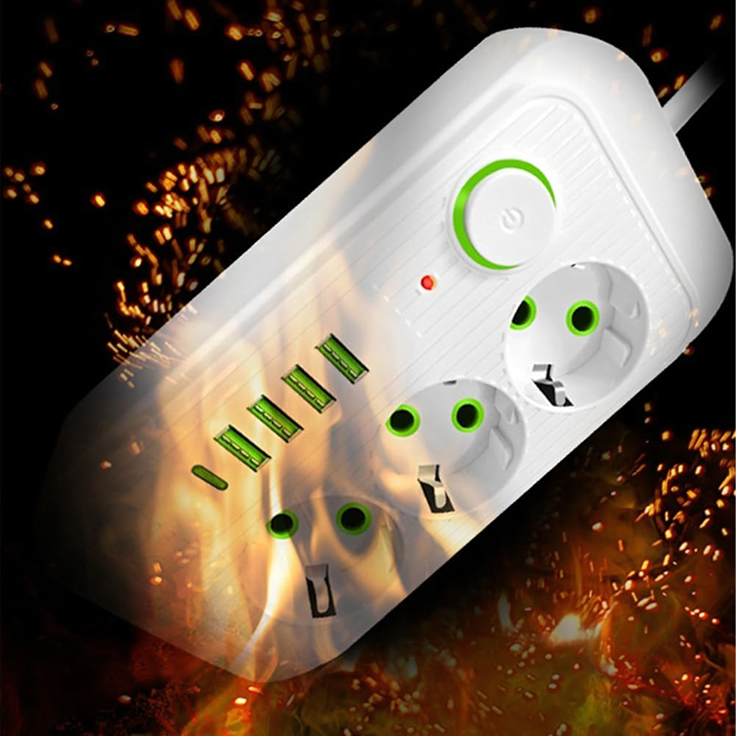 Listwa Zasilająca Przedłużacz Sieć 2m 3 Gniazda 5 x USB Ładowarka Włącznik