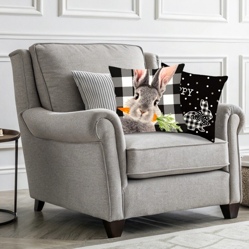 Lniana poszewka na poduszkę 45 x 45 cm Królik Black & white POD236