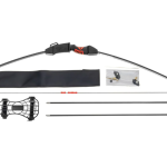 2 strzały z włókna szklanego, kołczan na strzały, ochraniacz na przedramię, tarcza strzelecka, podpórka pod strzałę, celownik