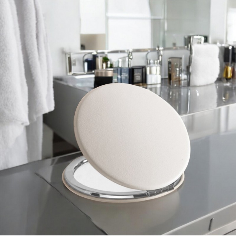 Lusterko kosmetyczne Białe eleganckie metalowe otwierane do torebki L11