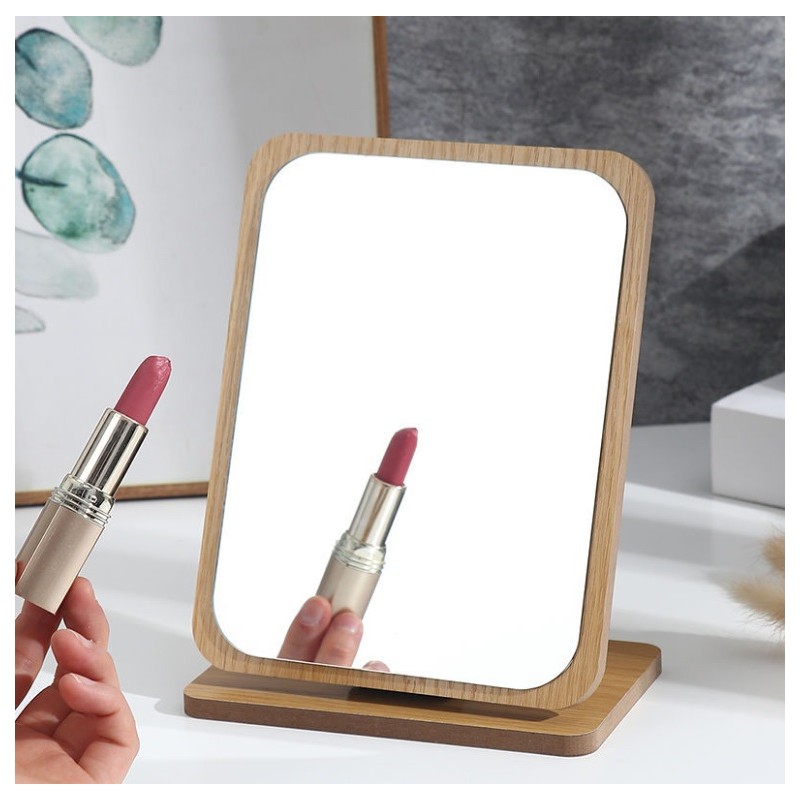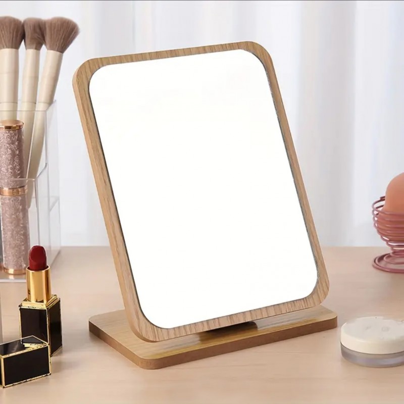 Lusterko kosmetyczne stojące drewniane prostokątne 21 x 16 cm L8BR