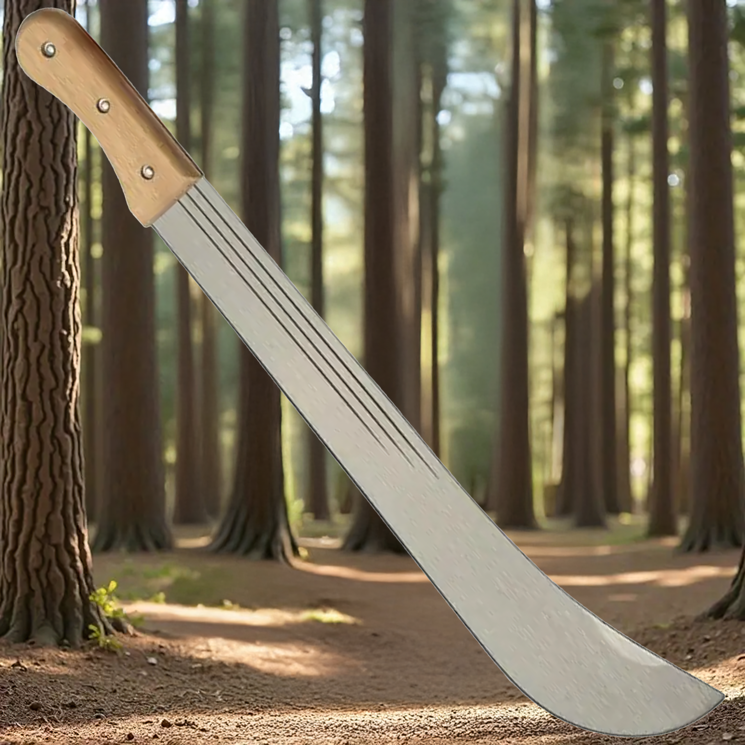 Hartowana maczeta ogrodowa 46 cm – solidne narzędzie z ostrą stalową klingą i wygodnym drewnianym uchwytem. Idealna do cięcia gałęzi, karczowania krzewów i survivalu. Wytrzymała, wszechstronna i łatwa w utrzymaniu – niezastąpiona w ogrodzie i w terenie.