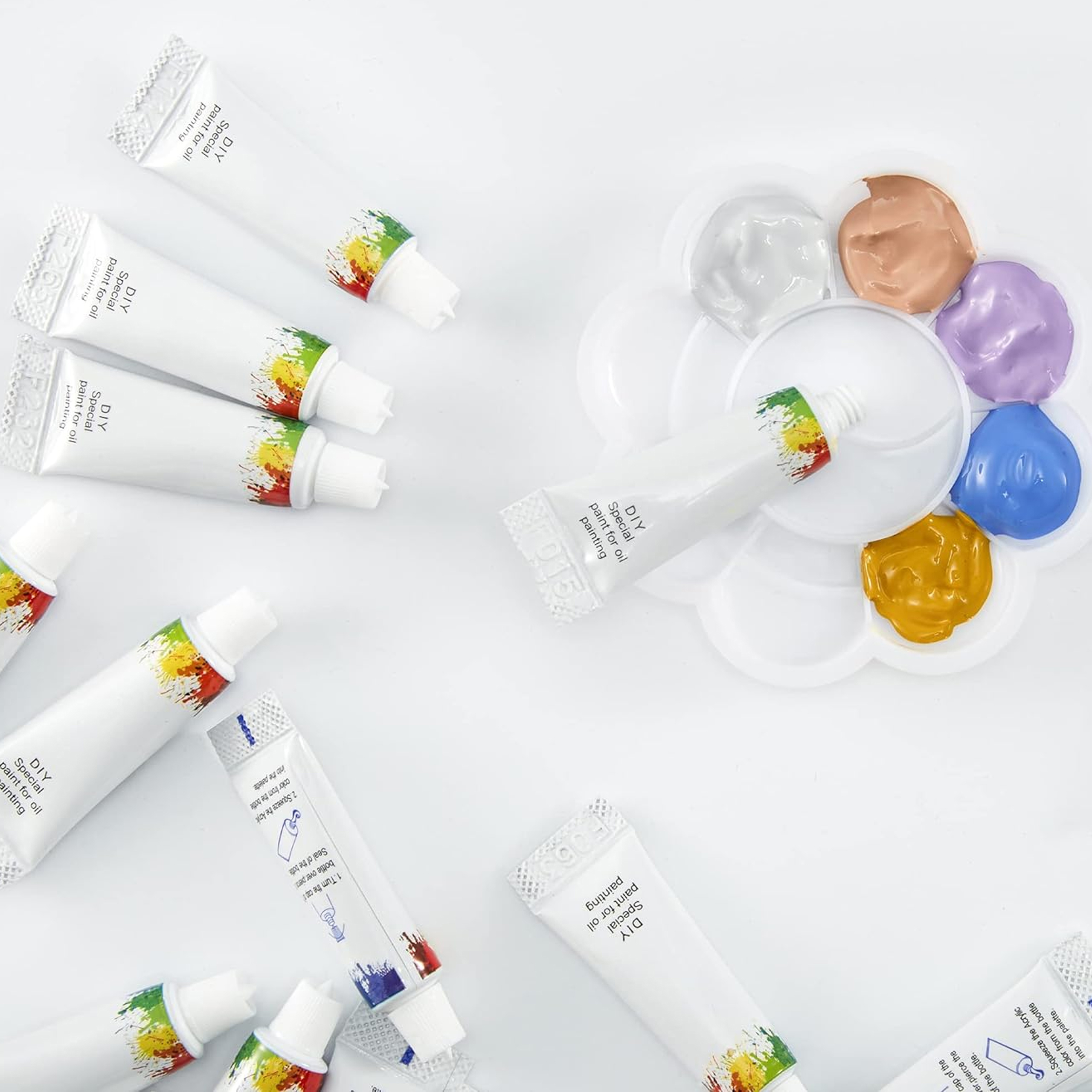 W skład zestawu wchodzi płótno z naniesionymi numerami w określonych polach. Każdy numer odpowiada określonemu kolorowi farby, a Twoim zadaniem jest wypełnienie tych pól odpowiednimi kolorami.