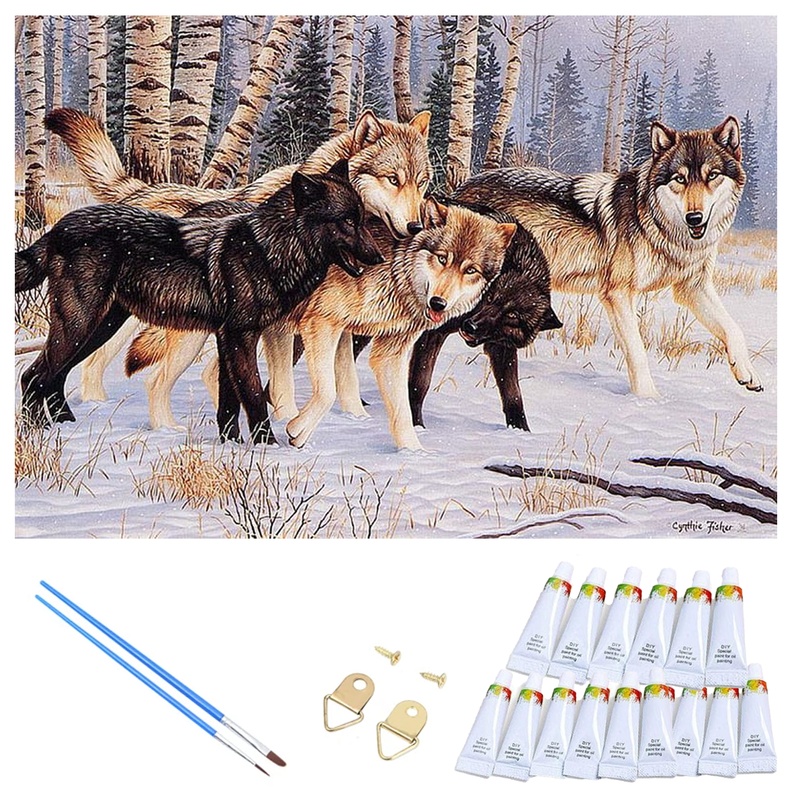 Malowanie Po Numerach z Ramą 40 x 50 cm – Wysokiej Jakości Komplet Do Malowania Stado wilków