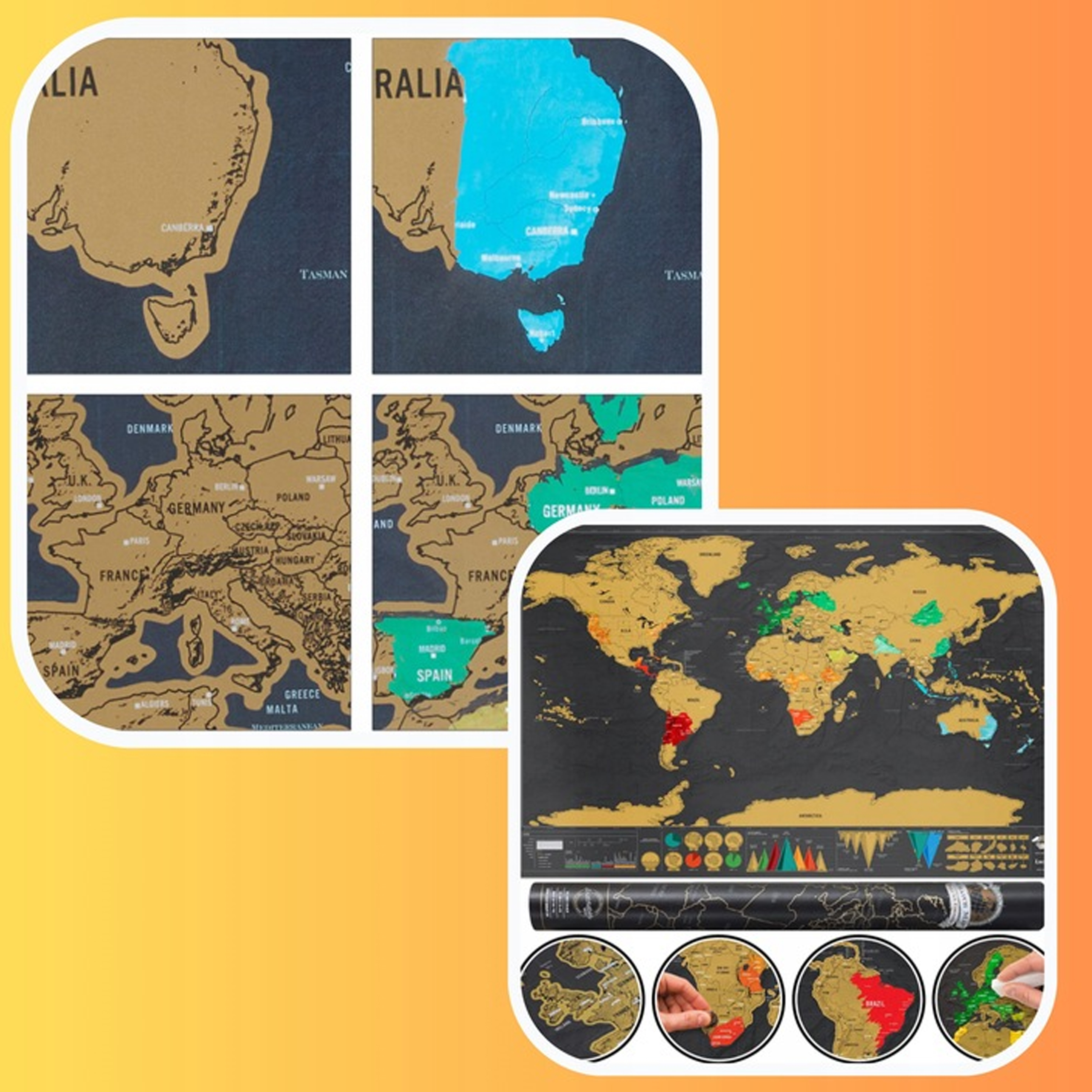 Mapa zdrapka mobilizuje do kolejnych podróży i poznawania nowych miejsc, dodatkowo uaktywnia wspomnienia z odwiedzonych miejsc. Ponadto zdrapka pełni funkcję edukacyjną. Pomoże poznać wszystkie kontynenty i państwa oraz ich położenie.