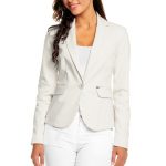 Marynarka to doskonała propozycja dla uzupełnienia stroju biznesowego i to na każdą porę roku. Marynarkę można z powodzeniem nosić pod płaszczem i kurtkami zimowymi, natomiast w ciepłe majowe lub czerwcowe dni idealnie będą prezentowały się z ołówkową spódnicą, jak i materiałowymi chinosami. Szyku dodaje także smukły, otwarty kołnierz i delikatne zapięcie na jeden guzik oraz kieszenie pod klapami.
