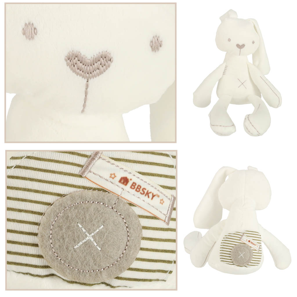 Pluszowa maskotka w kształcie białego króliczka. Wykonana z miękkiego i przyjemnego w dotyku materiału. Doskonały kompan do zasypinia. W nóżkach i rączkach posiada granulki. Wypełnienie: wełna syntetyczna. Długość: 49cm. Kolor: Biały