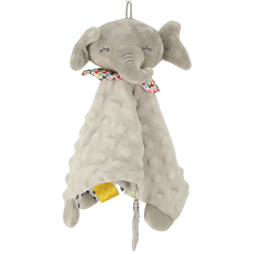 Kolorowe metki wokół słonika będą przykuwały uwagę maluszka oraz