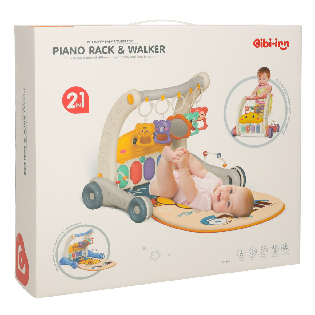 Mata edukacyjna chodzik pchacz z pianinkiem 2w1 Bibi-inn szara