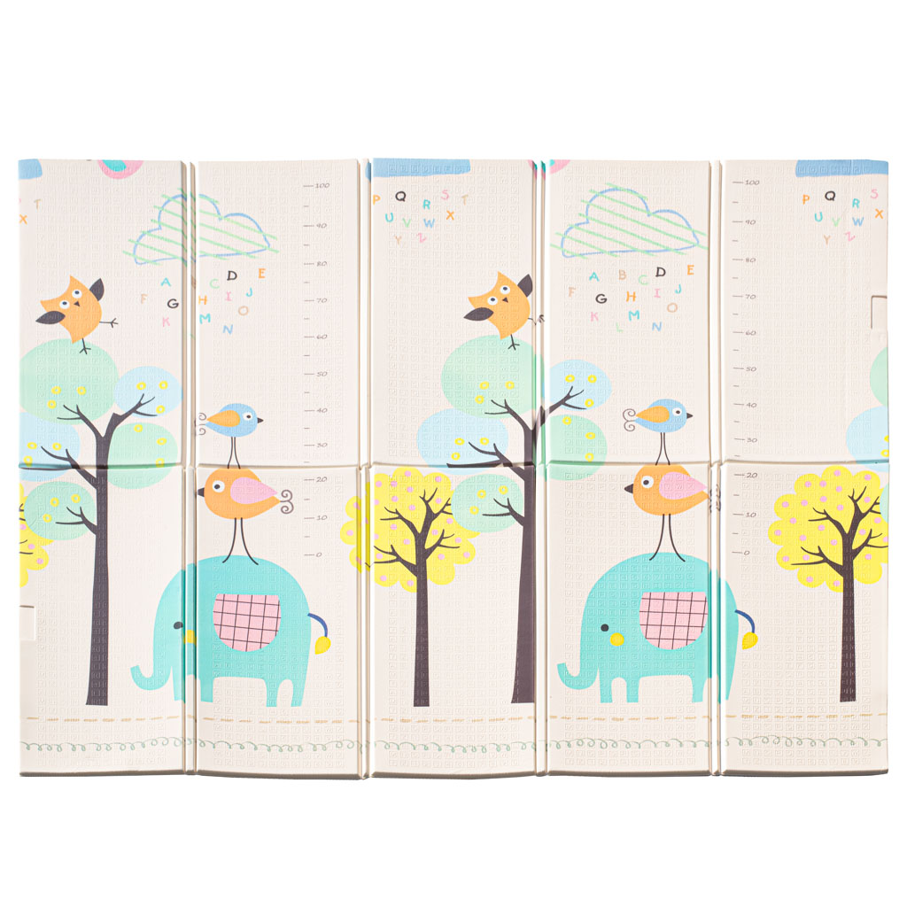 Dwustronna mata piankowa – centrum nauki i zabawy! Doskonale izoluje od zimnego podłoża oraz amortyzuje upadki dziecka podczas nauki chodzenia. Ciekawy wzór ze słonikami przyciąga uwagę. Tworzywo: pianka XPE. Wymiary: 179 cm x 198 cm.