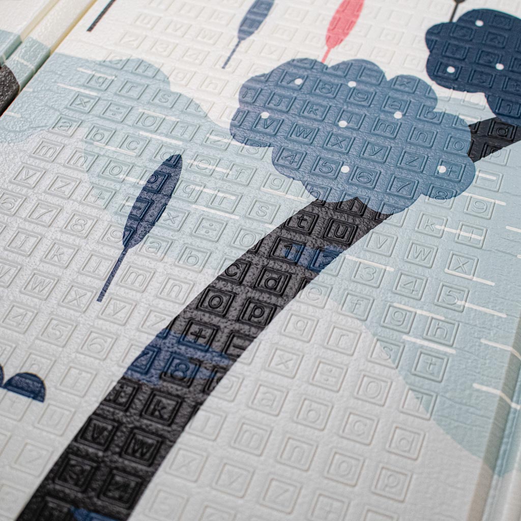 Dwustronna i składana mata piankowa. Jedna strona z nadrukiem lasu i zwierzątek, druga – ulicy z samochodami. Idealnie sprawdzi się podczas zabawy lub nauki raczkowania. Ochroni dziecko przed upadkiem i zimną podłogą. Wymiary: 158×177. Grubość: 8mm.