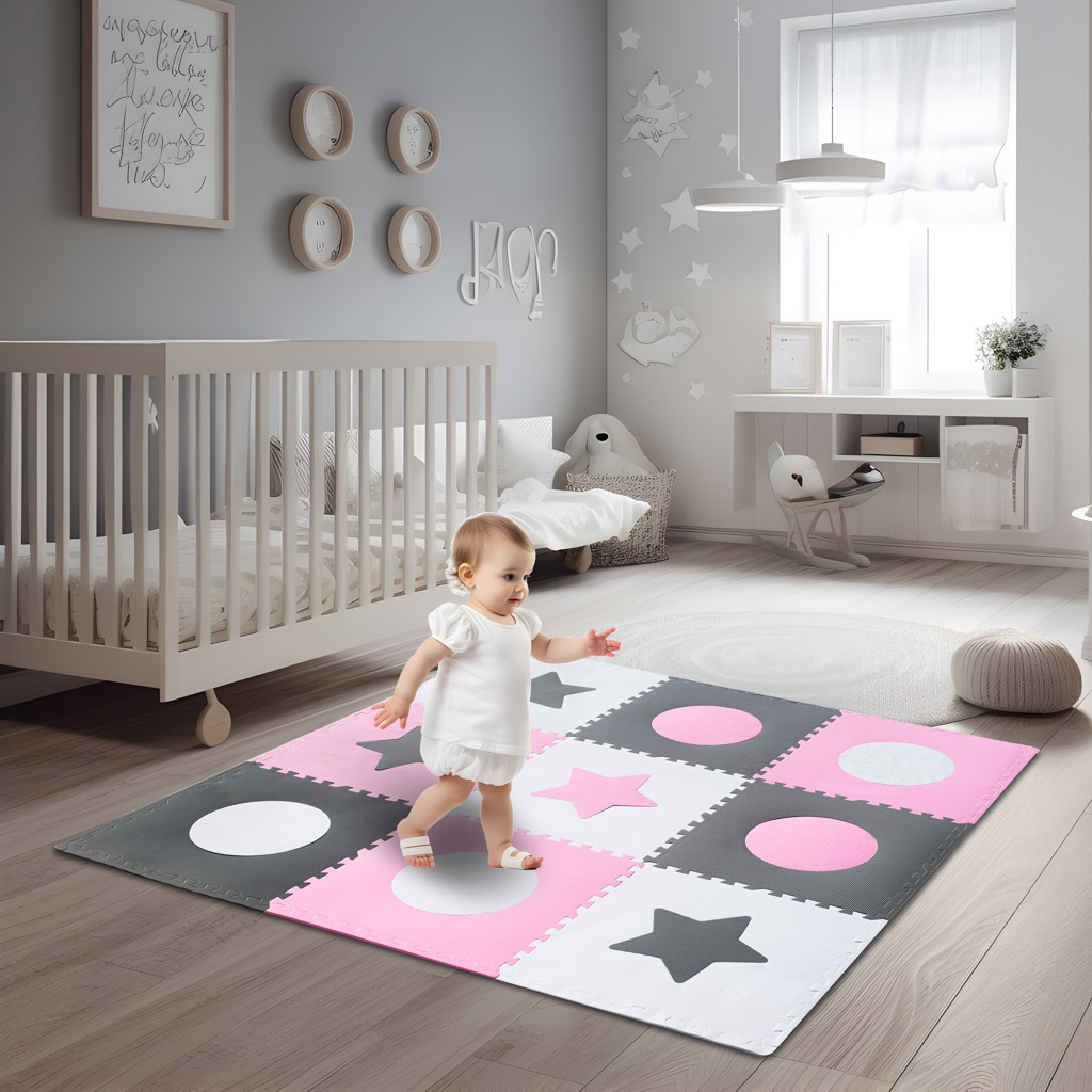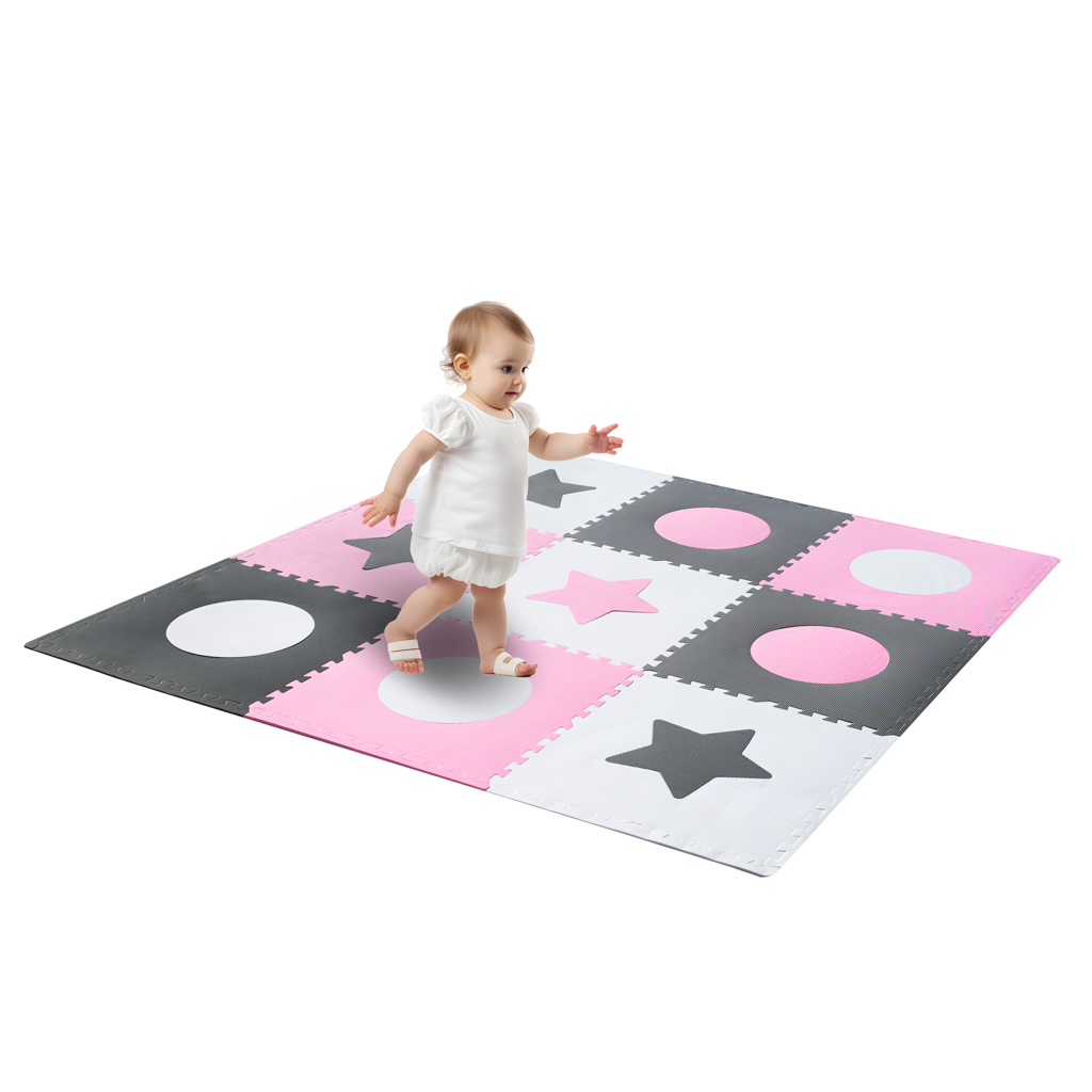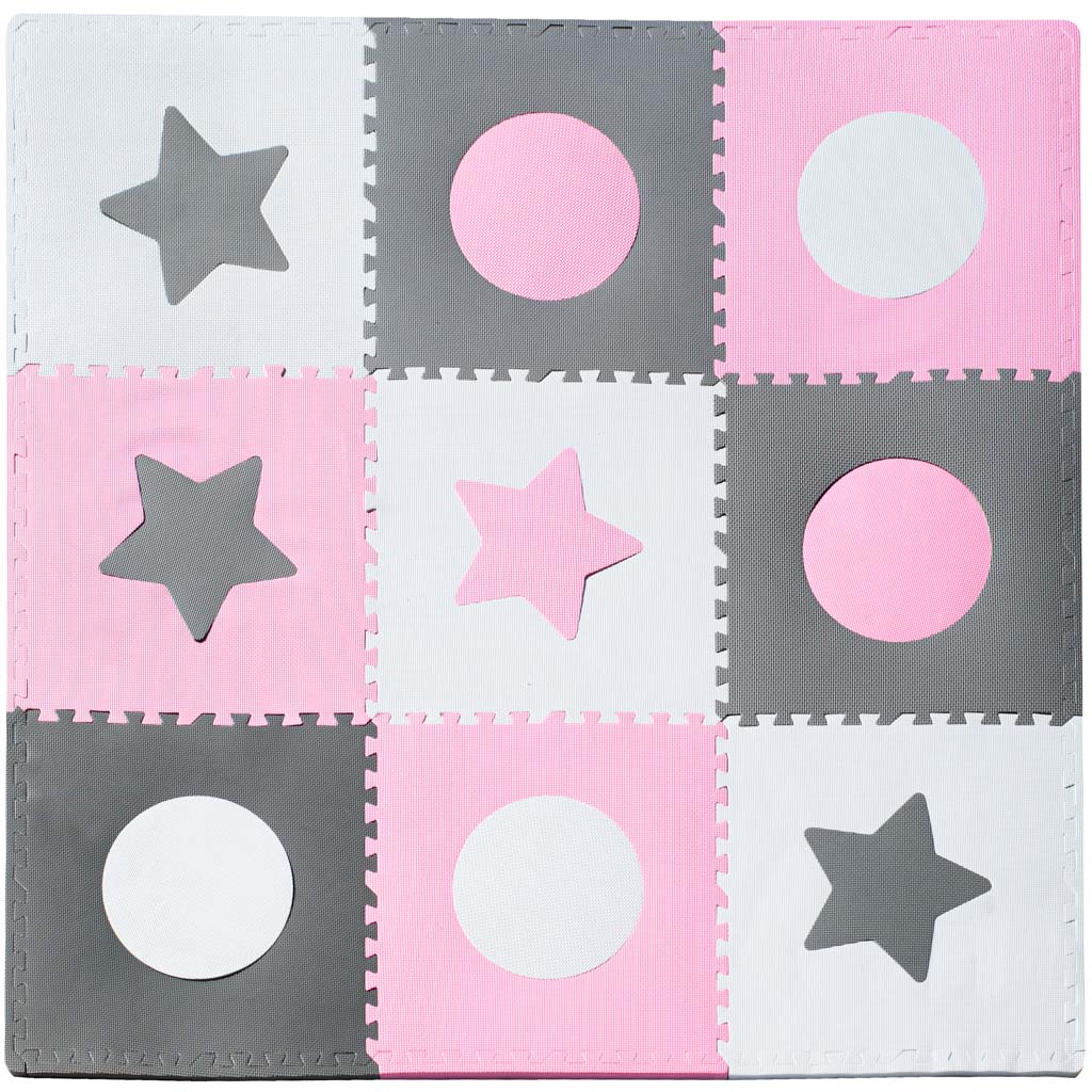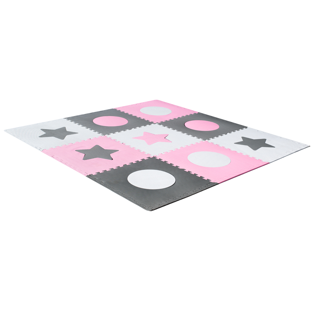 Mata edukacyjna piankowa puzzle szara różowa 60 x 60 cm 9 elementów