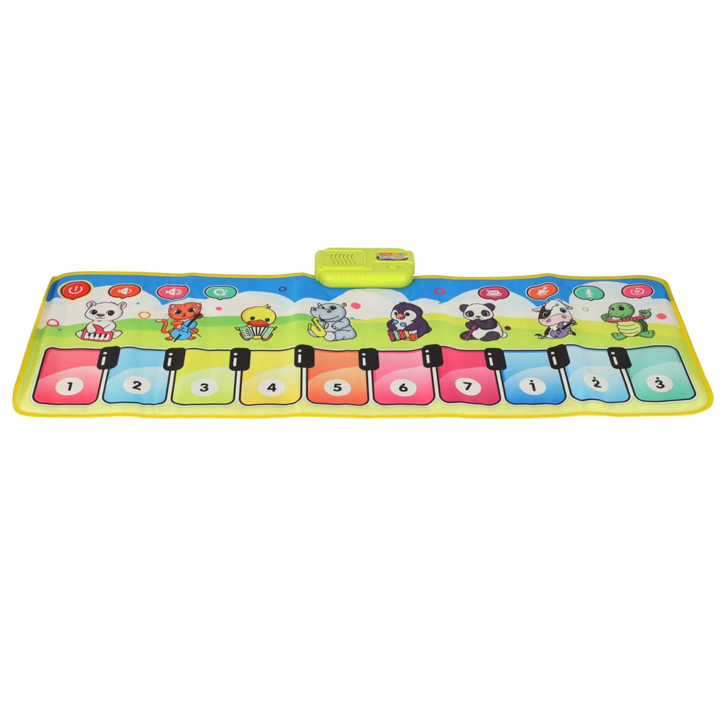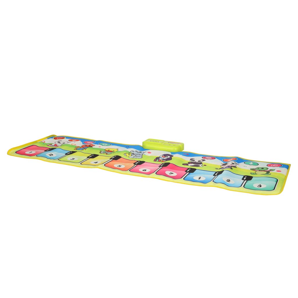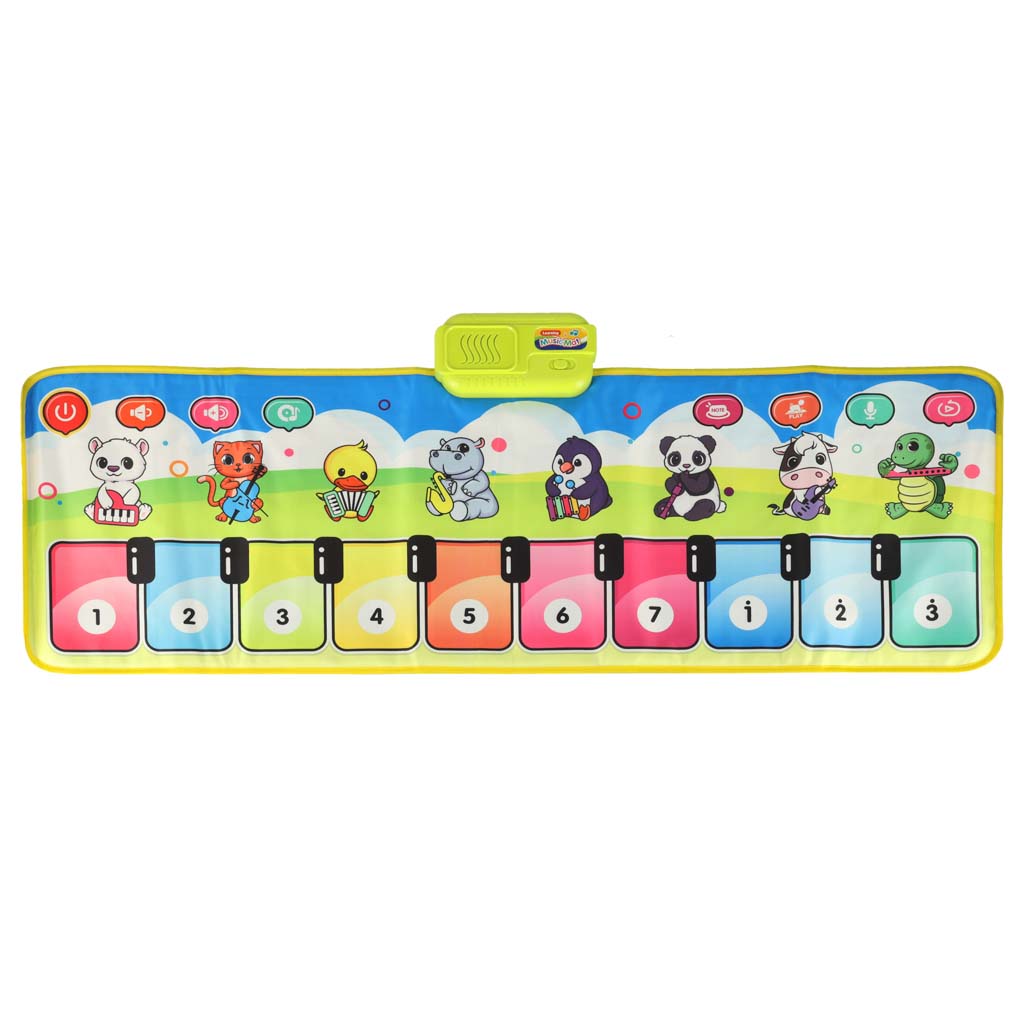 Muzyczna mata interaktywna z nagrywaniem. Gwarantuje dziecku aktywną zabawę z dźwiękiem. Mata posiada 7 stopniową regulację głośności. Zabawa rozwinie poczucie rytmu, dotyku i czucia. Zasilanie: 3x AA (brak w zestawie). Wym. maty: 109,5×37,5cm.