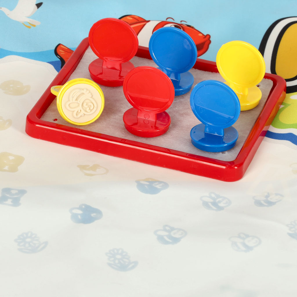 kształty. Dodatkowo znajdują się tu stempelki, które po namoczeniu wodą można