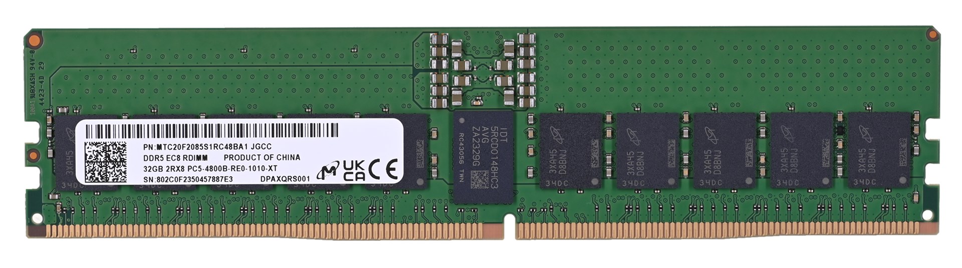 Micron RDIMM 32GB DDR5 2Rx8 4800MHz PC5-38400 ECC REGISTERED MTC20F2085S1RC48BR