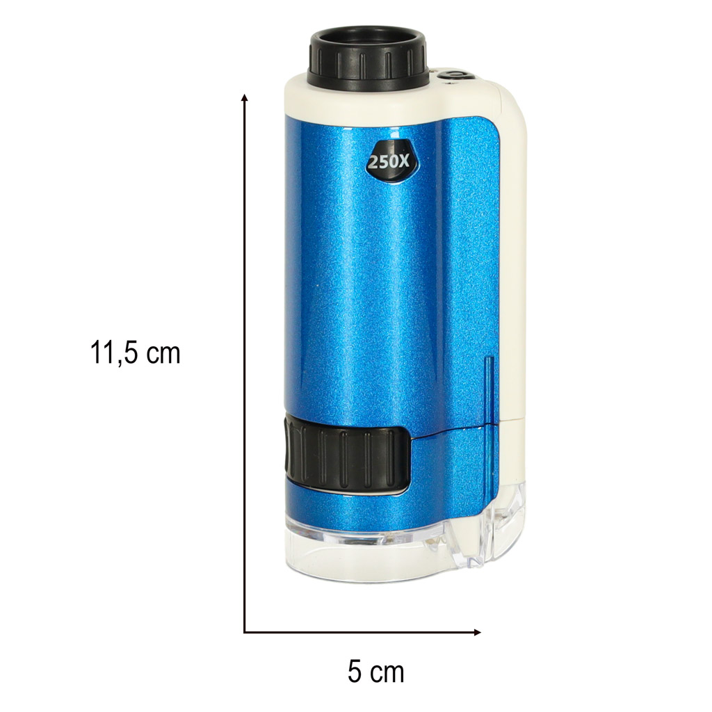 Wiek: 6+. Wymiary mikroskopu: 11,5 cm x 5 cm. Wymiary opakowania: 17 cm x 12 cm x 5,8 cm.