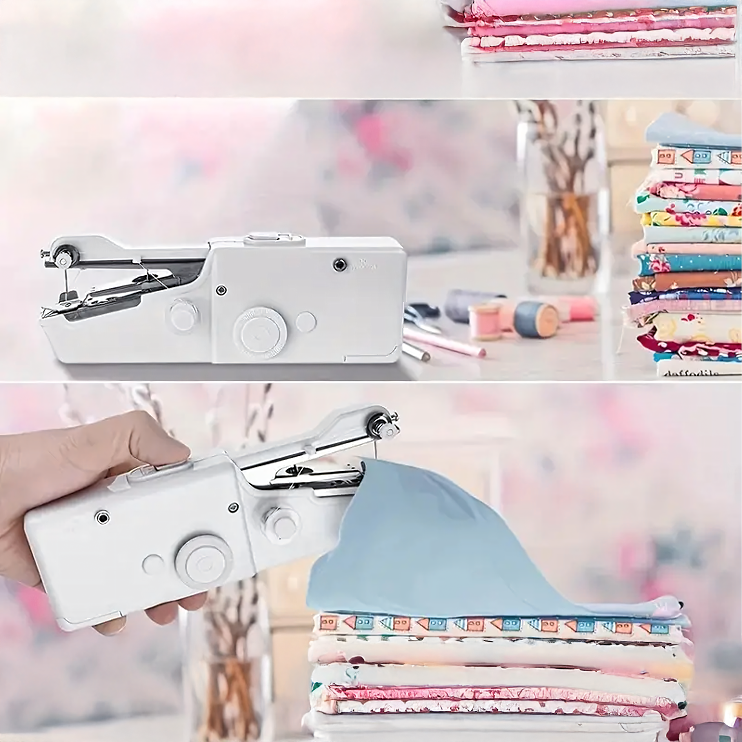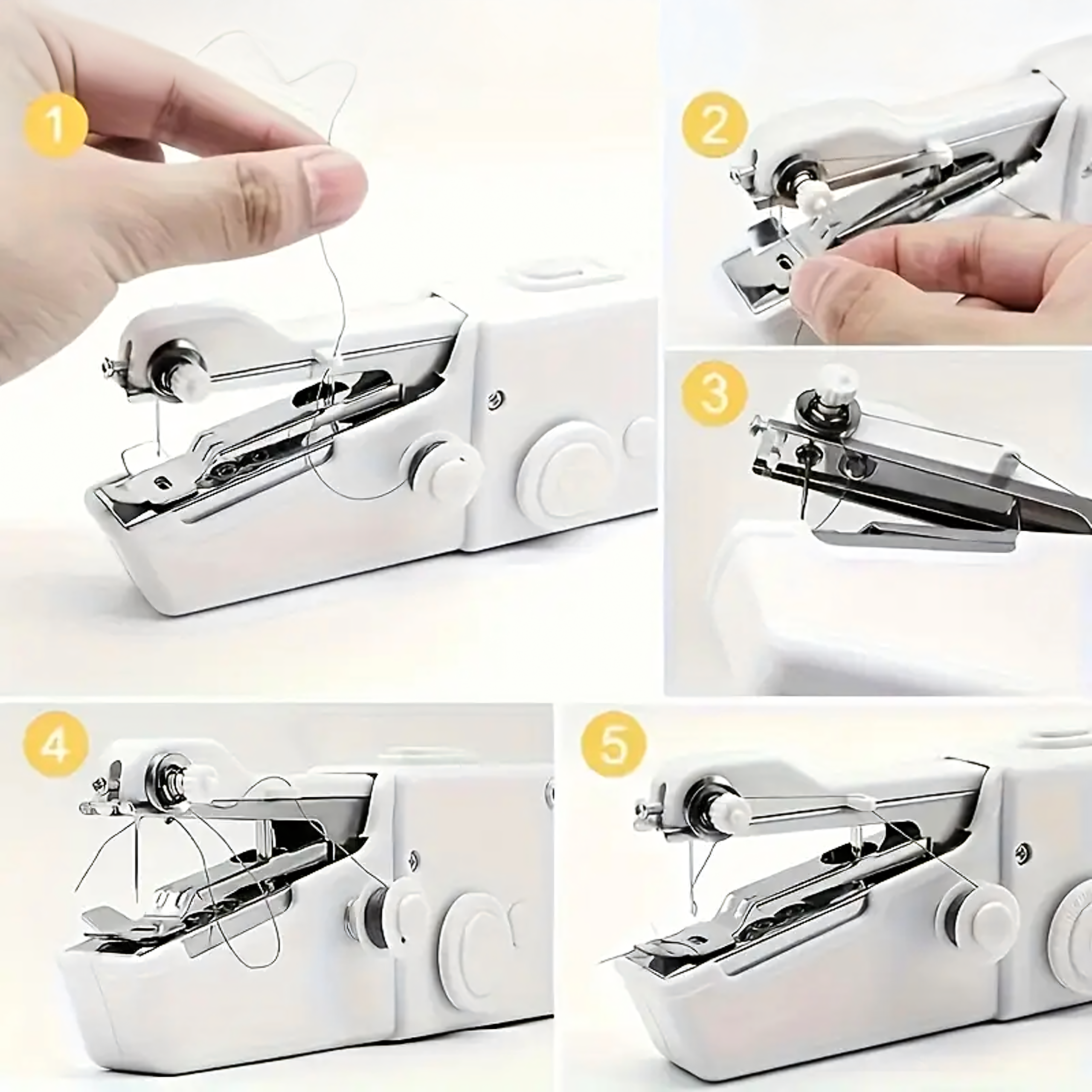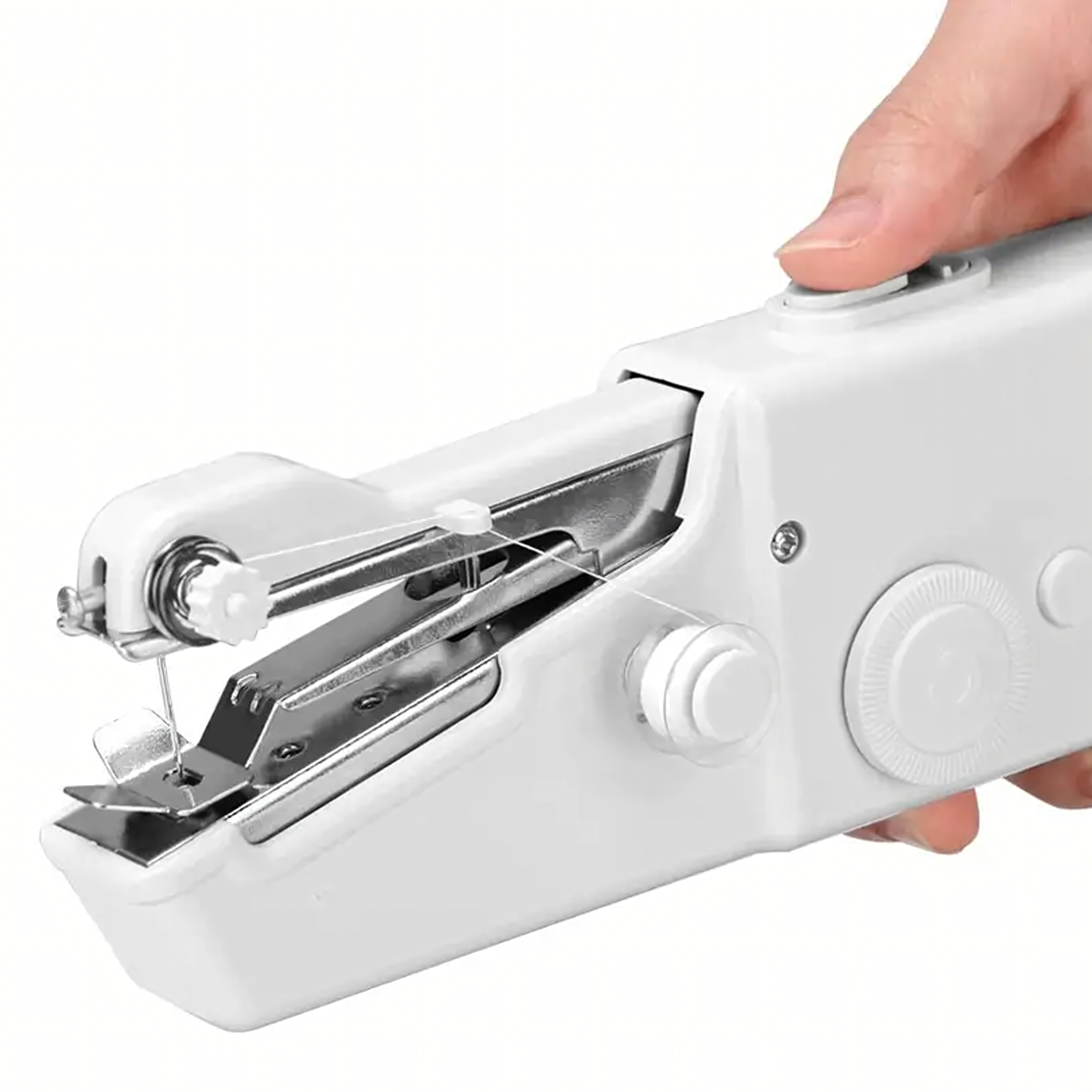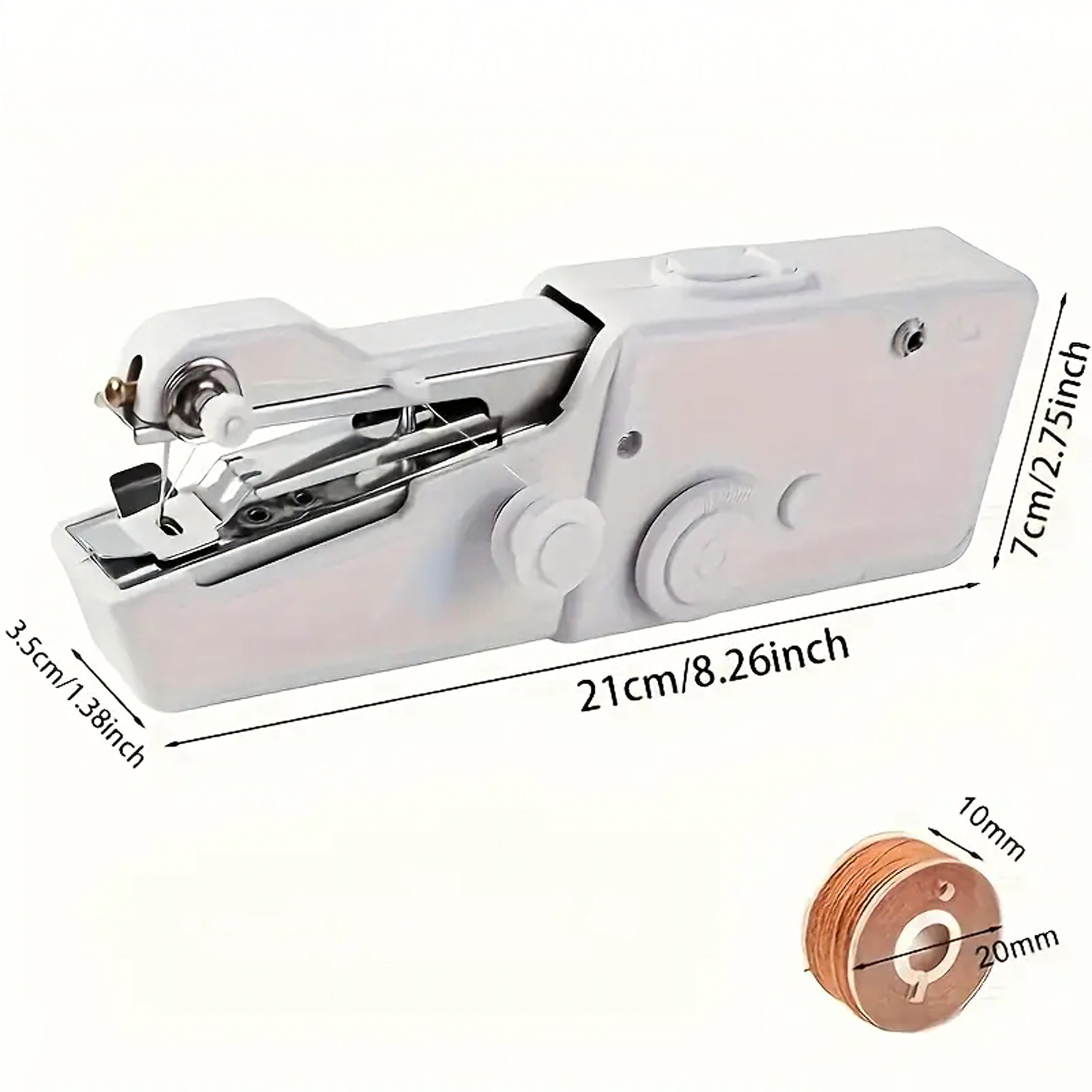 Mini przenośna maszyna do szycia na baterie AA – lekka, kompaktowa i łatwa w obsłudze, idealna do szybkich napraw ubrań w domu i w podróży, radzi sobie z różnymi tkaninami od jedwabiu po jeans, a w zestawie posiada praktyczne akcesoria krawieckie.