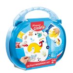 Kreatywny zestaw w walizce z masy plastycznej lew zawiera 3 kolory nietoksycznej modeliny, niezbędne narzędzia, w tym bezpieczne nożyczki, oraz 3 plansze z postaciami. Zabawka odpowiednia dla dzieci powyżej 2 roku życia.