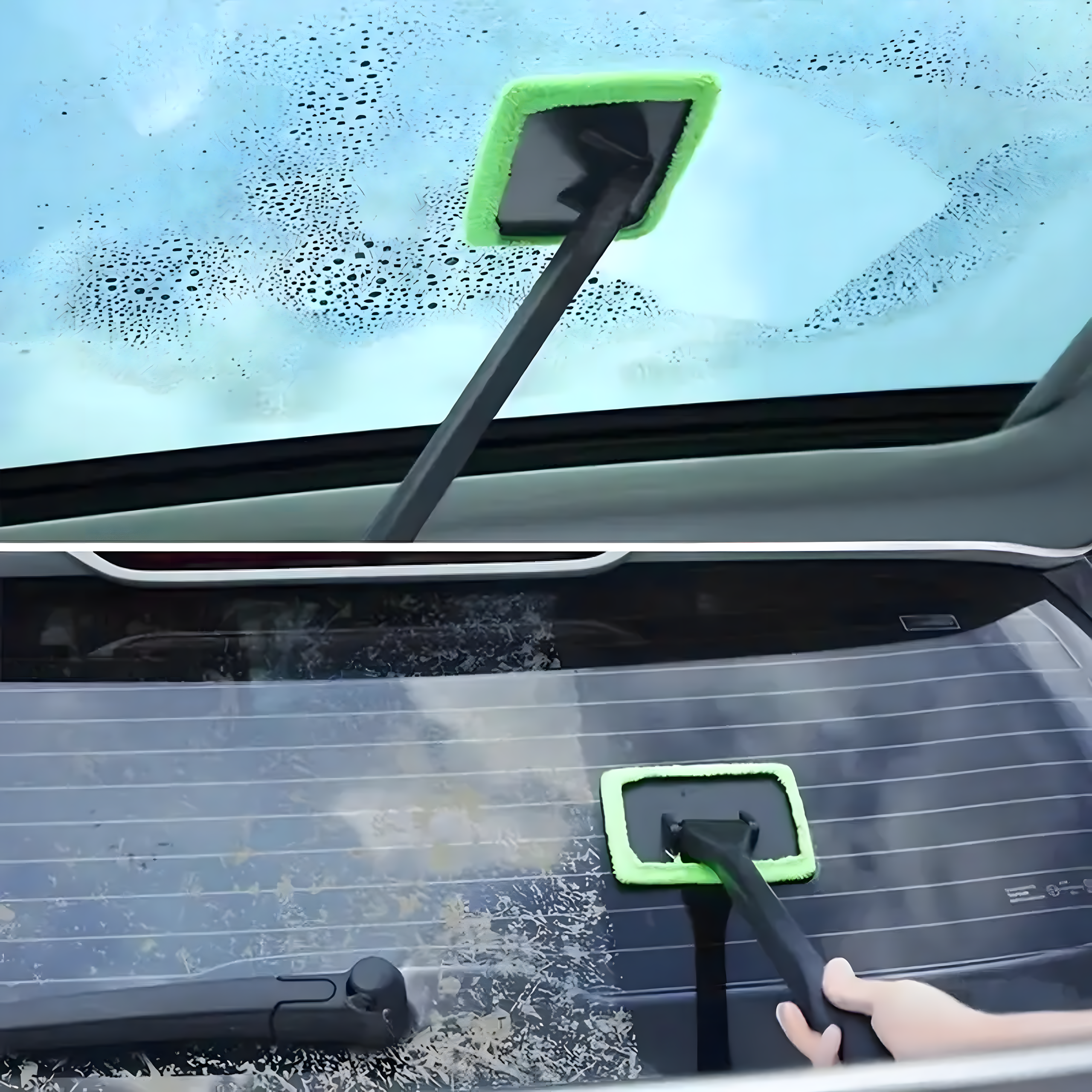 Myjka szczotka z mikrofibry do szyb, okien i luster – z obrotową głowicą i długim uchwytem. Skutecznie usuwa brud, kurz i parę bez smug. Nakładkę można prać w pralce. Idealna do auta i domu!