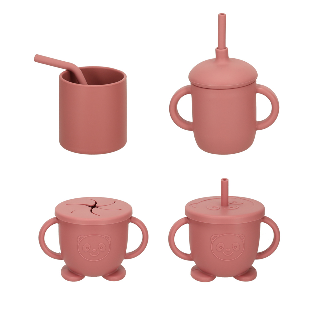 Naczynia silikonowe dla dzieci krab zestaw 19 el ciemny różowy