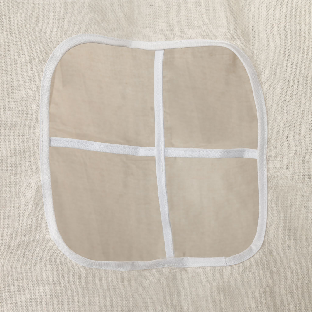 Lniany namiot, który będzie fantastycznym miejscem do zabawy, ale też przytulnym kącikiem to wypoczynku. Neutralne kolory i naturalne tworzywa wpasuję się w każde wnętrze. Tworzywo: drewno + len. Wys. namiotu: 135cm. Wym. okienka: 19x22cm.