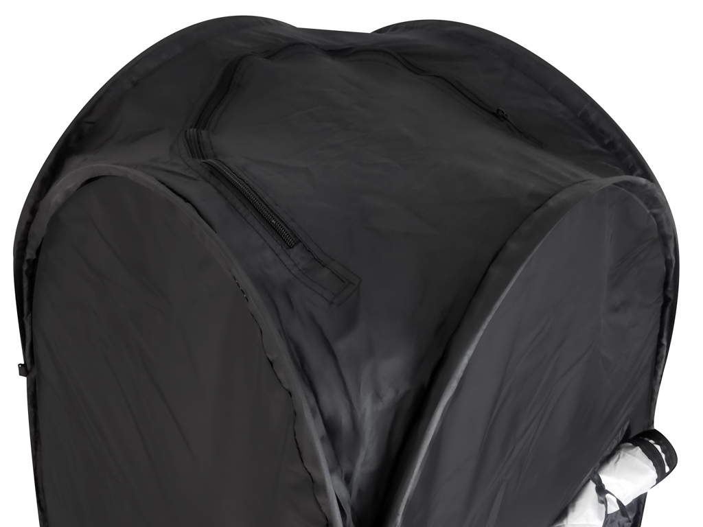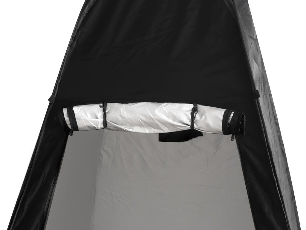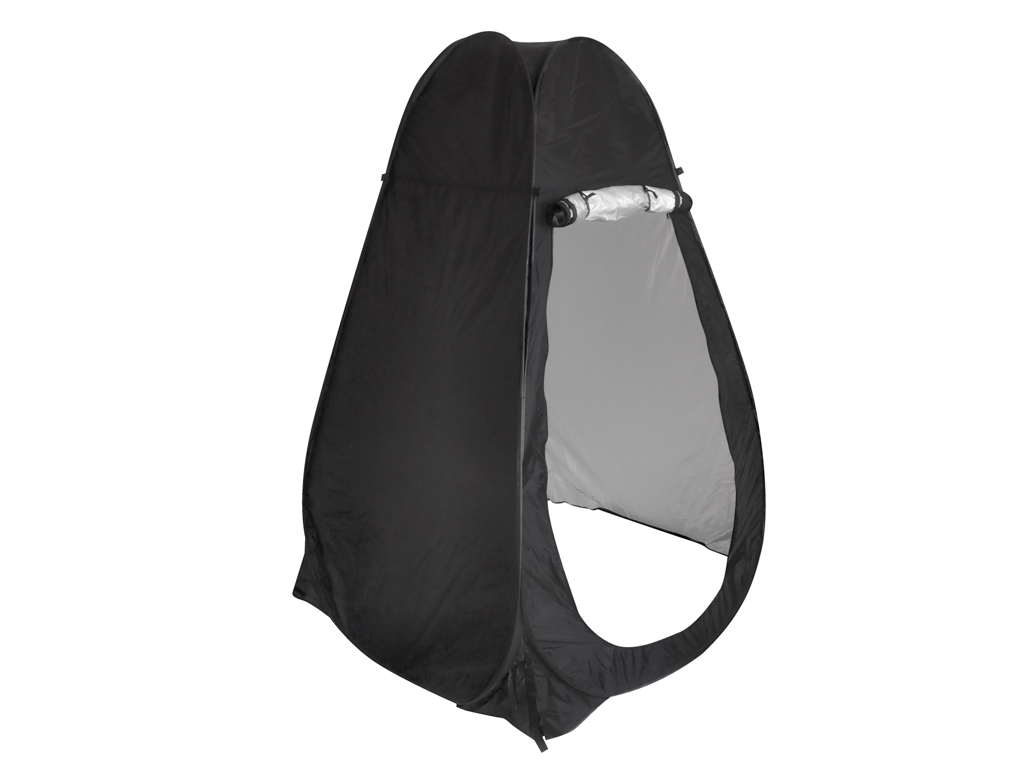 Wielofunkcyjny, samorozkładający namiot plażowy. Może być przenośną przebieralnią, miejscem na prysznic lub toaletę. Zapewni prywatność oraz osłoni przed słońcem, wiatrem i deszczem. Kolor: czarny. Tworzywo: poliester. Wymiary: 110x110x180cm.