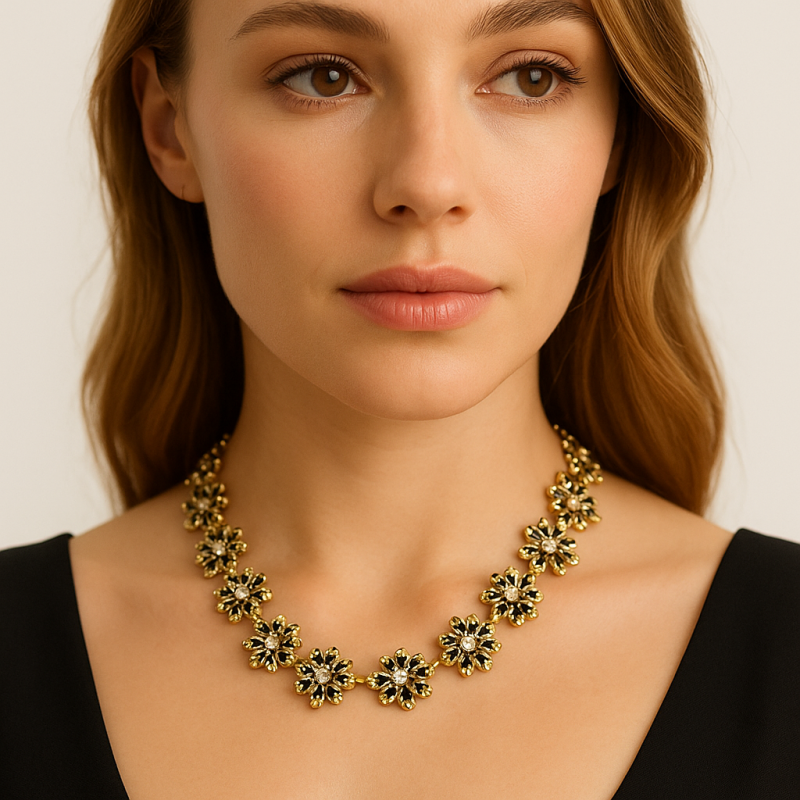 NASZYJNIK AŻUROWY KWIATUSZKI STARE ZŁOTO N261Z