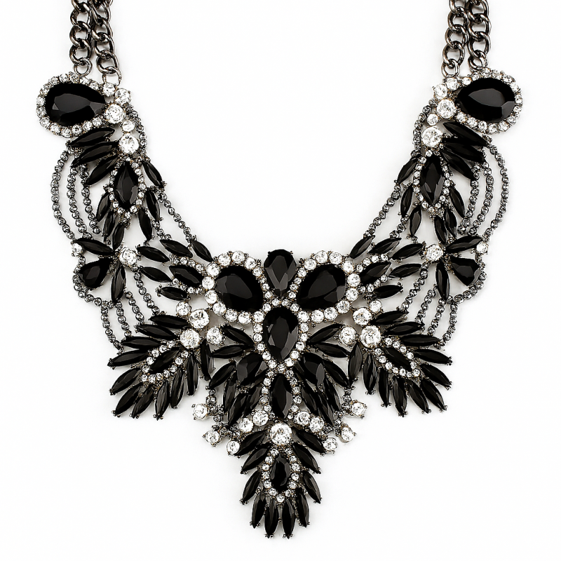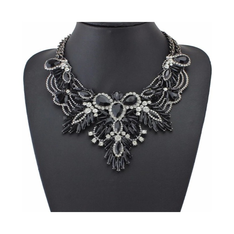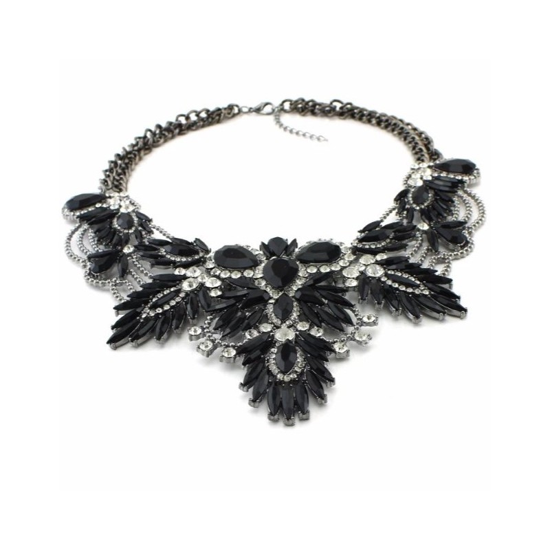 Naszyjnik, kolia kryształowa, cyrkonie efektowna czerń N347CZ