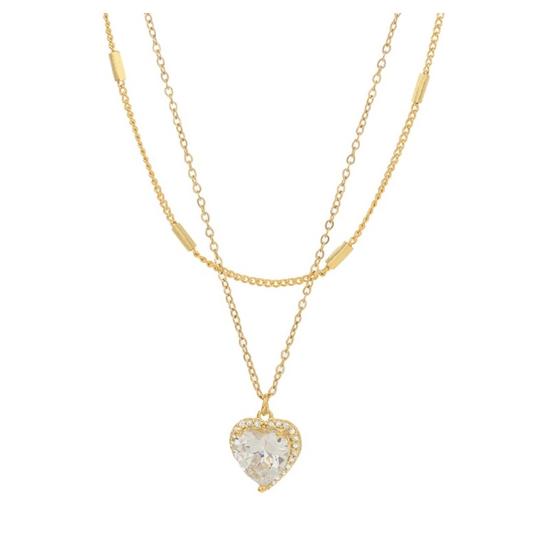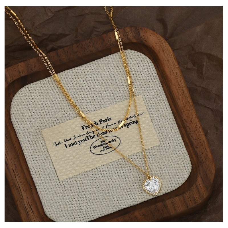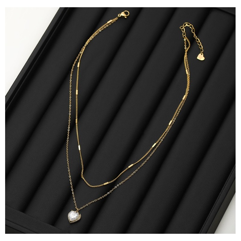 Naszyjnik serce stal szlachetna pozłacana 14k złotem, z cyrkoniami NST1629