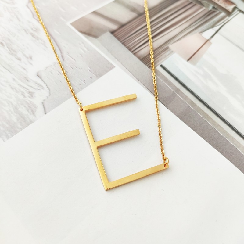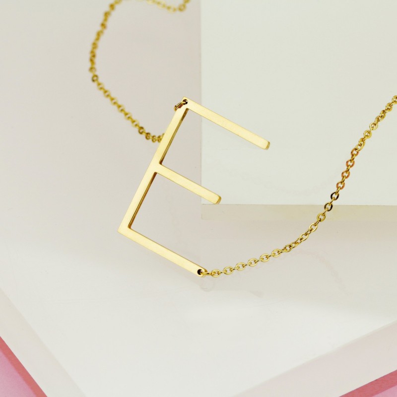 Naszyjnik stal chirurgiczna literka E platerowana złotem NST995E