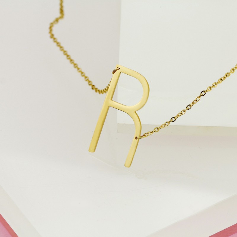 Naszyjnik stal chirurgiczna literka R platerowana złotem NST995R