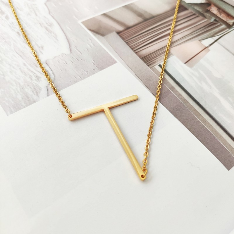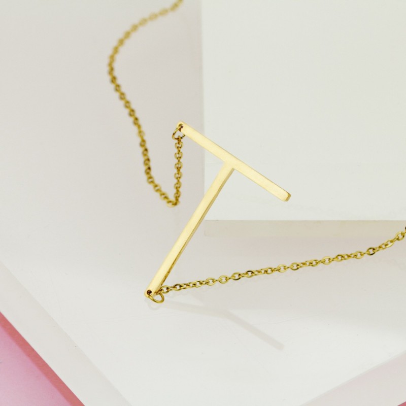 Naszyjnik stal chirurgiczna literka T platerowana złotem NST995T