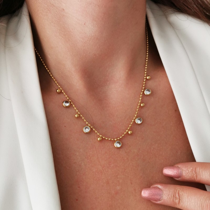 Modny naszyjnik ze stali szlachetnej platerowanej 14 – karatowym złotem Świetnie pasuje do eleganckich, jak również do codziennych stylizacji.