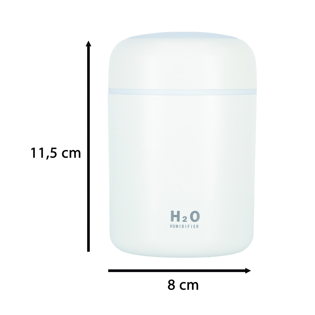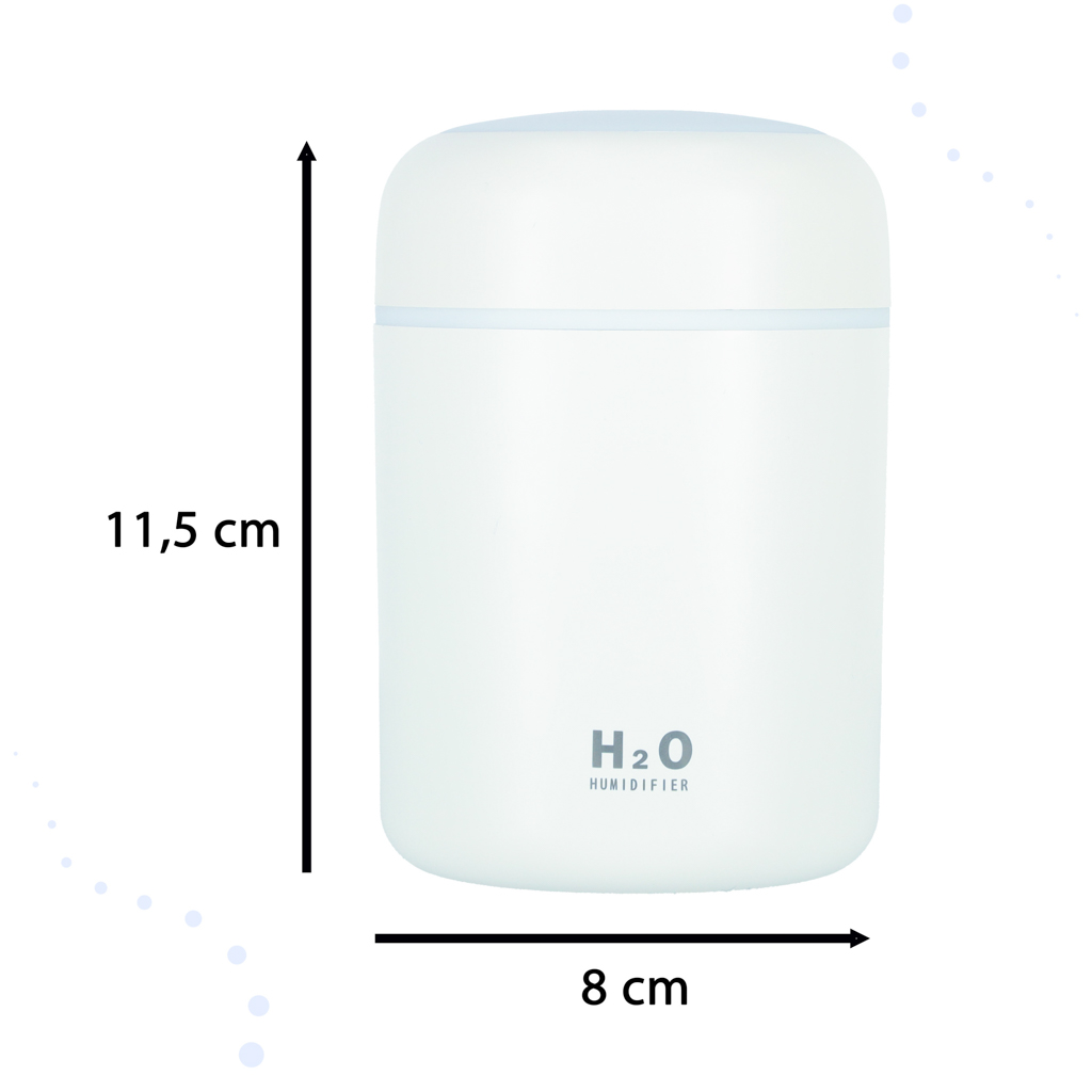 Niewielki nawilżacz powietrza, który nawilży i poprawi jakość powietrza w domu. Może również służyć jako dyfuzor do olejków eterycznych. Posiada podświetlenie białe i RGB. W zestawie 2 wymienne filtry. Wymiary: 11,5 cm x 8 cm.