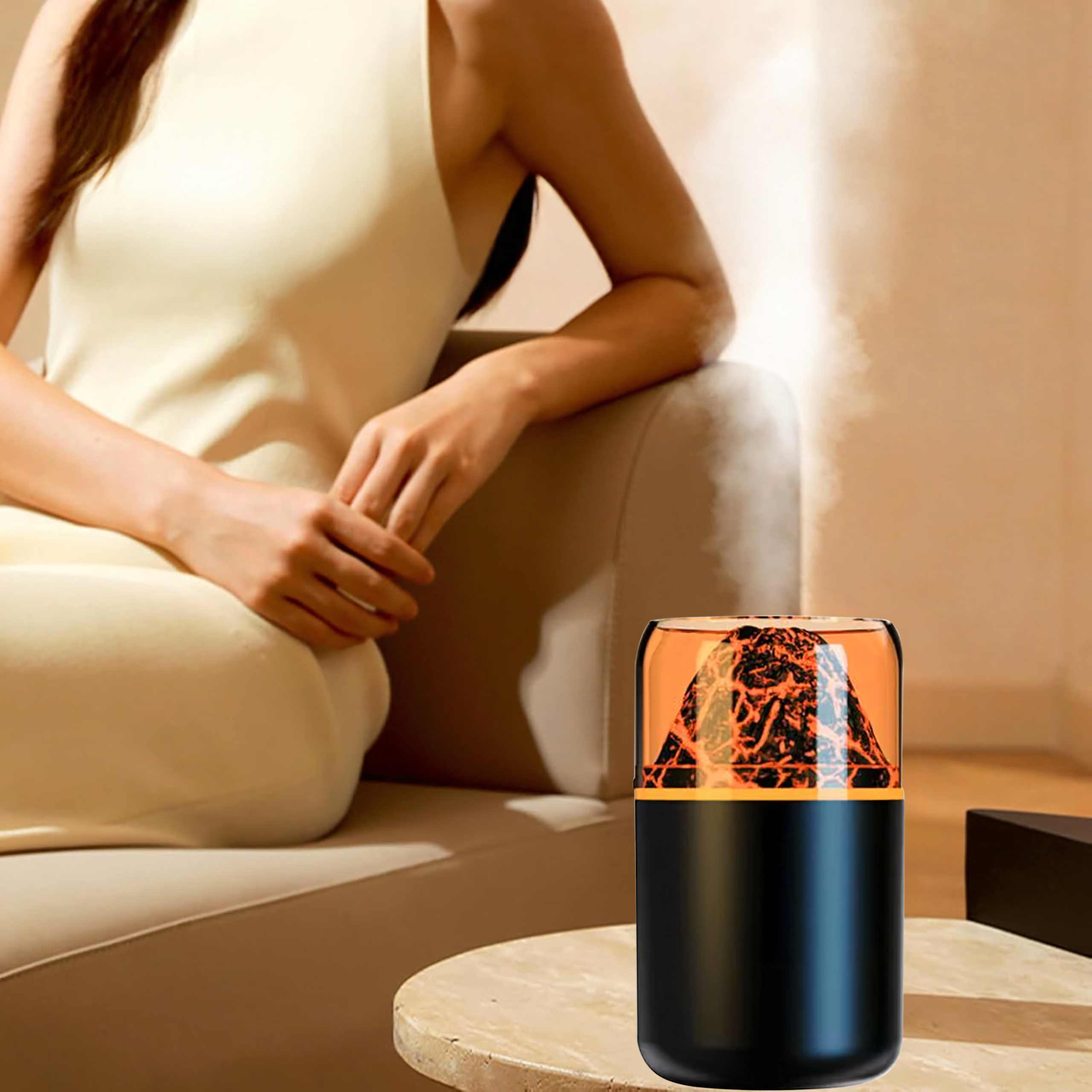 Nawilżacz powietrza z efektem „wulkanu” – połączenie stylu i funkcjonalności.