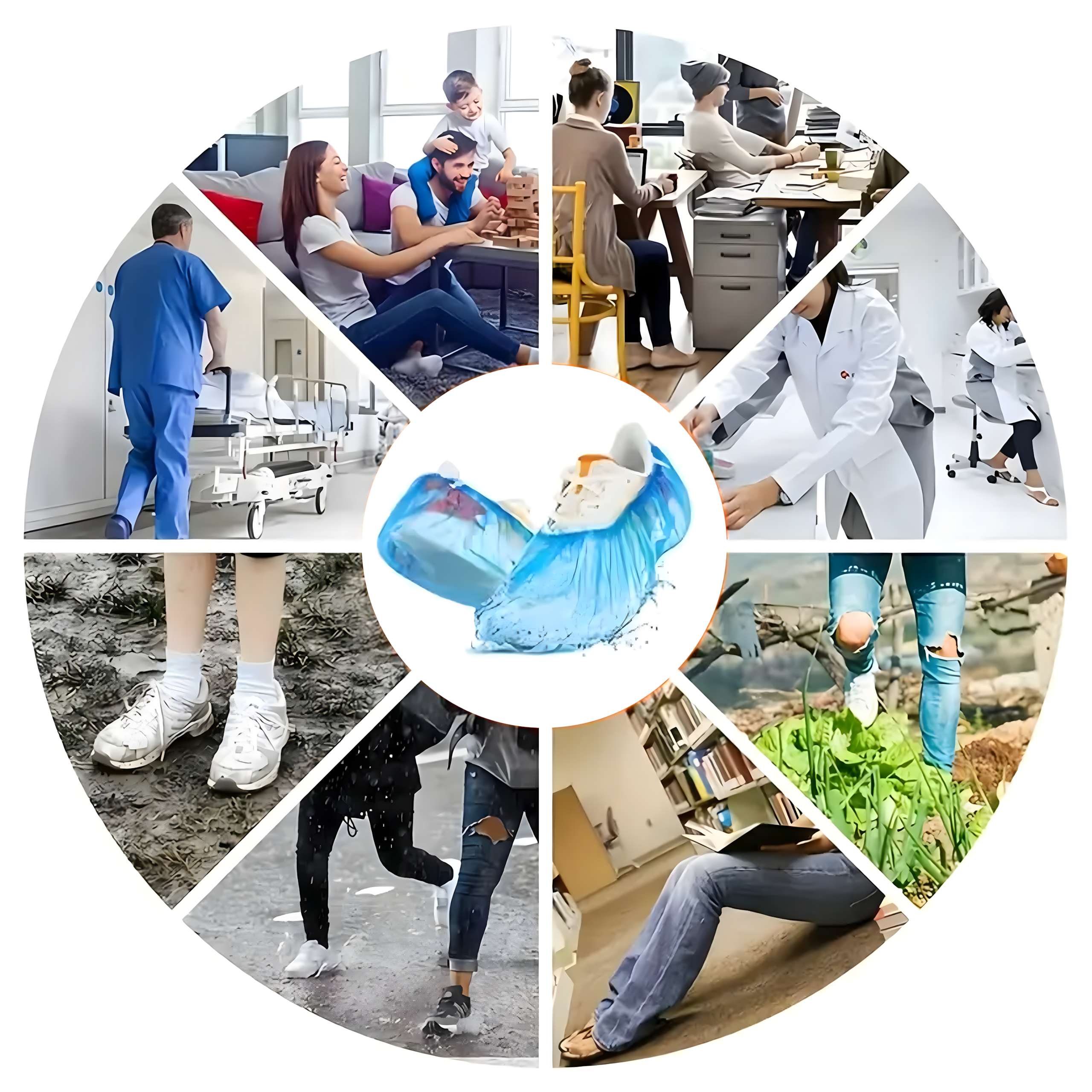 Foliowe ochraniacze na buty (20 szt. / 10 par) – wykonane z wytrzymałej, wodoodpornej folii LDPE. Uniwersalny rozmiar, elastyczny ściągacz i lekka konstrukcja sprawiają, że idealnie sprawdzą się w domu, medycynie, gastronomii czy budownictwie.