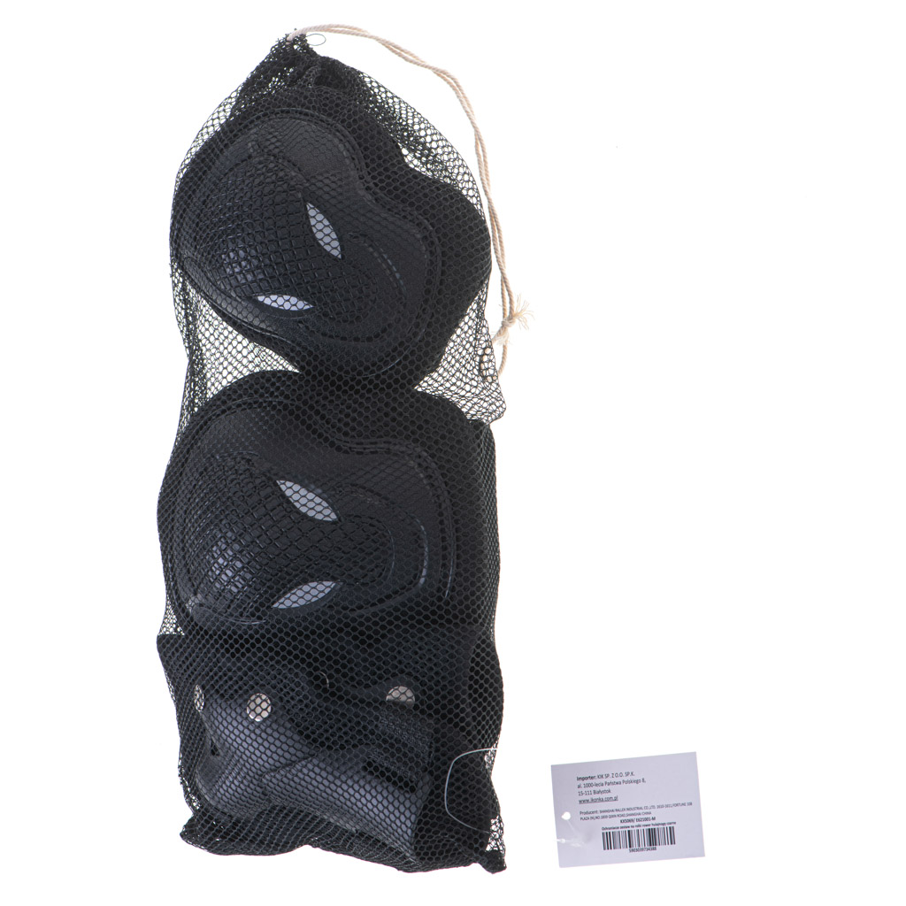 W zestawie znajdują się ochraniacze na nadgarstki, łokcie i kolana