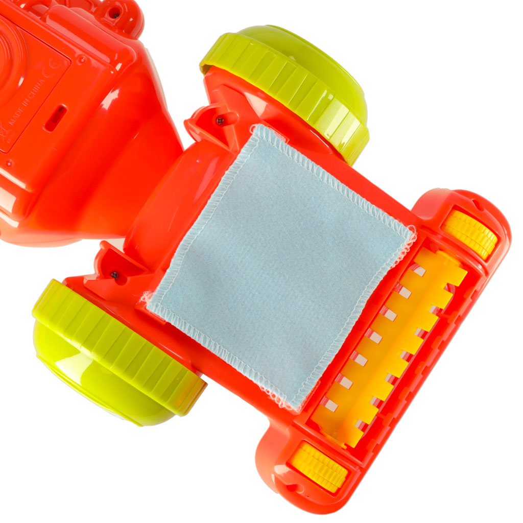 Interaktywny odkurzacz dla dzieci. Świeci i wydaje wesołe dźwięki. Dołączona szmatka elektrostatyczna zbierze drobne śmieci. Zabawa pozwoli nauczyć dziecko dbałości o porządek. Zasilany na baterie: 3x AA 1,5V (brak w zestawie). Wymiary: 18x17x46cm.
