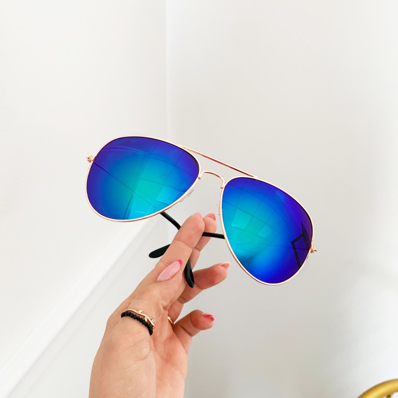 OKULARY PRZECIWSŁONECZNE AVIATORY PILOTKI – TURKUSOWE ZE ZŁOTYMI OPRAWKAMI OK281WZ1