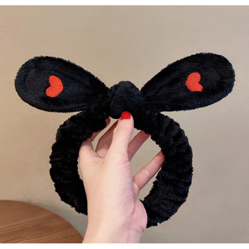 Opaska kosmetyczna do włosów z kokardą Serduszka Czarna OPK11CZ
