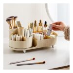 Elegancki ryflowany organizer na kosmetyki z obrotowym pojemnikiem na pędzle. Specyfikacja: