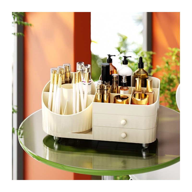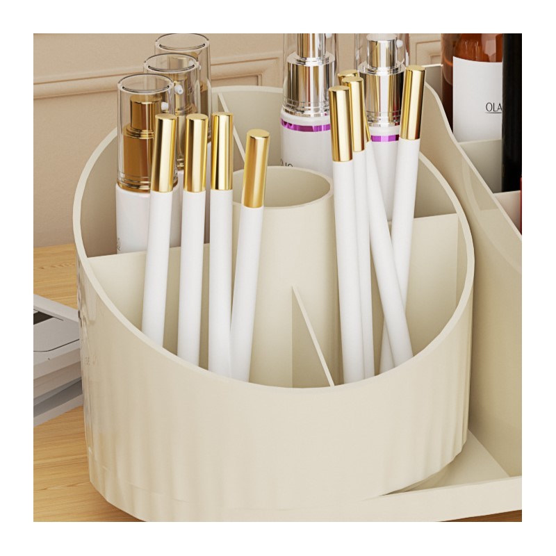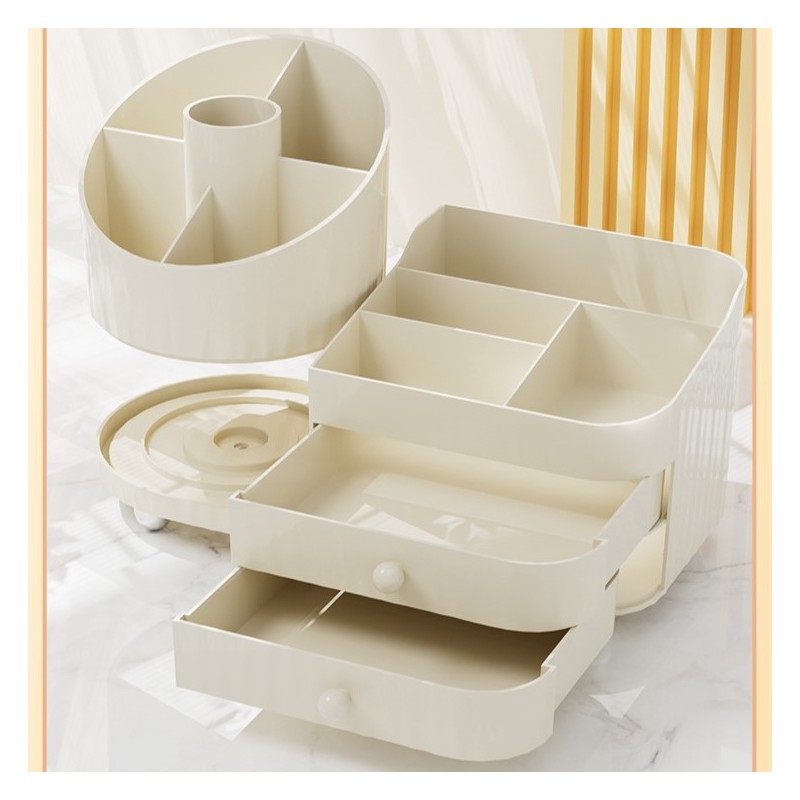Organizer na pędzle, kosmetyki, obrotowy z szufladkami, kremowy 31 x 14,5 x 11,6 cm CB66