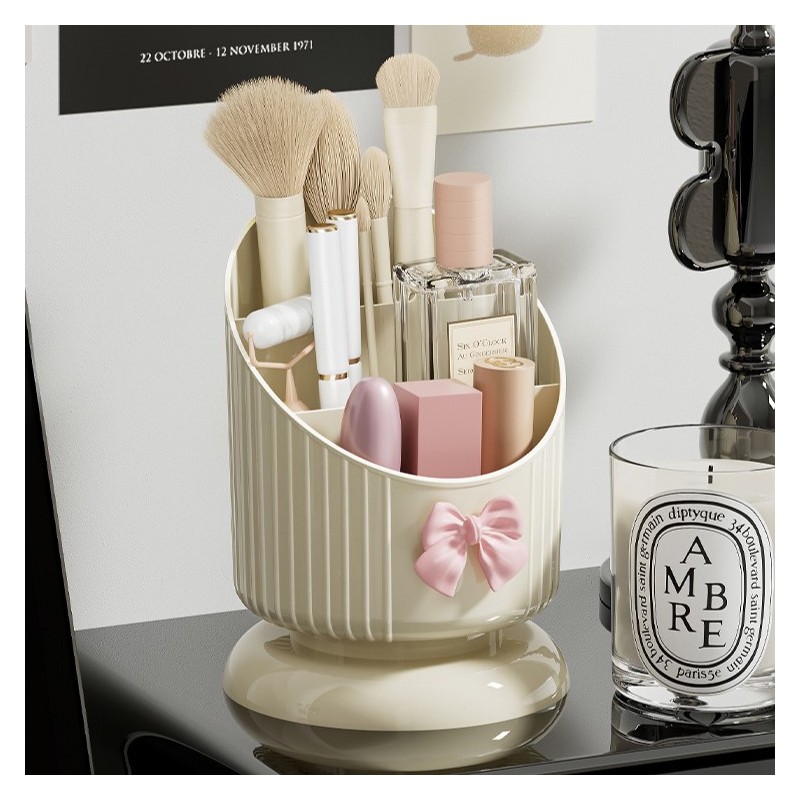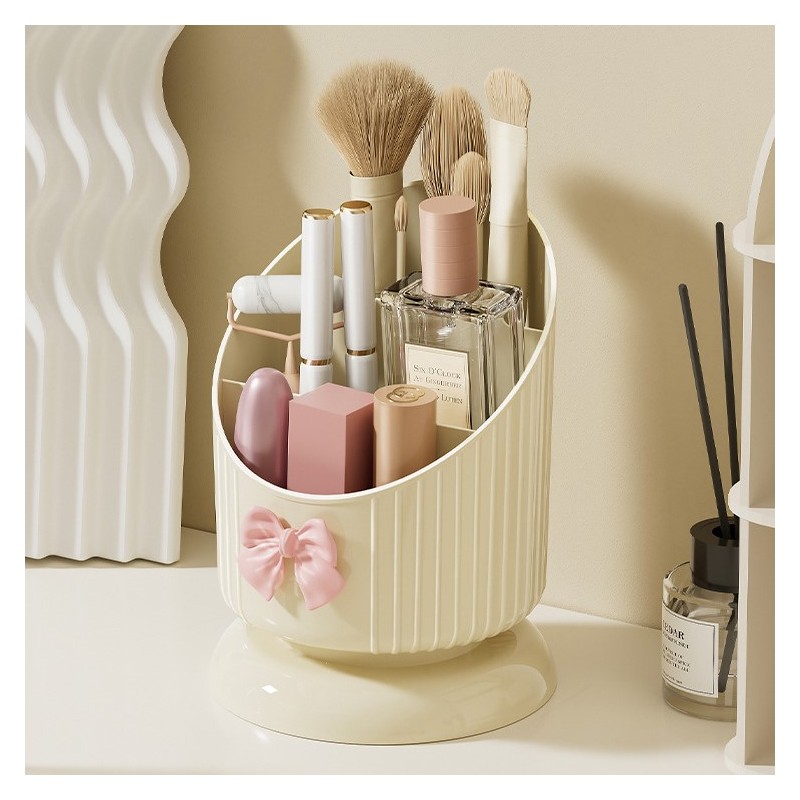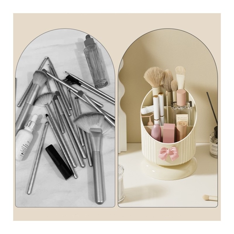 Organizer na pędzle, Kremowy z różową KOKARDKĄ 15,8 x 11 cm CB67
